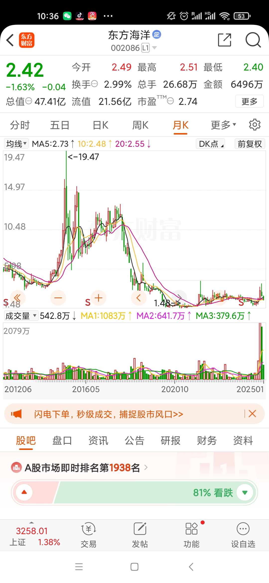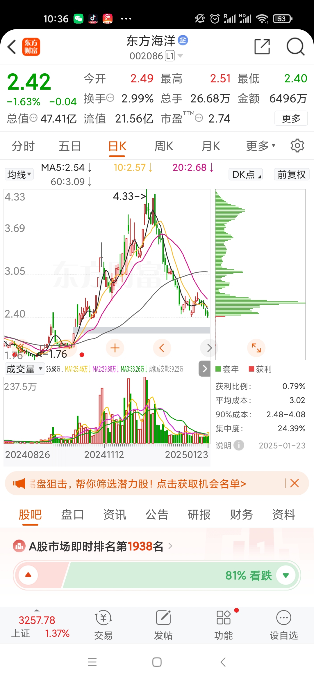 。。。东方海洋,已跌80%。散户别入坑。不支持融券收割机制,来主力