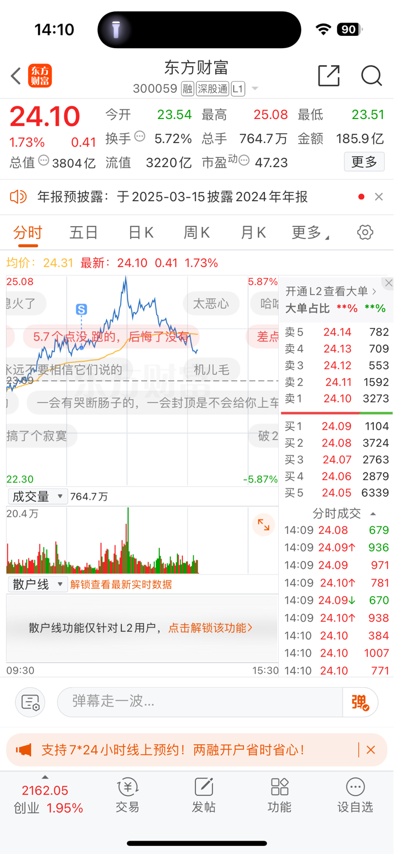 $东方财富(SZ300059)$ 还好跌了。总算舒服一点额