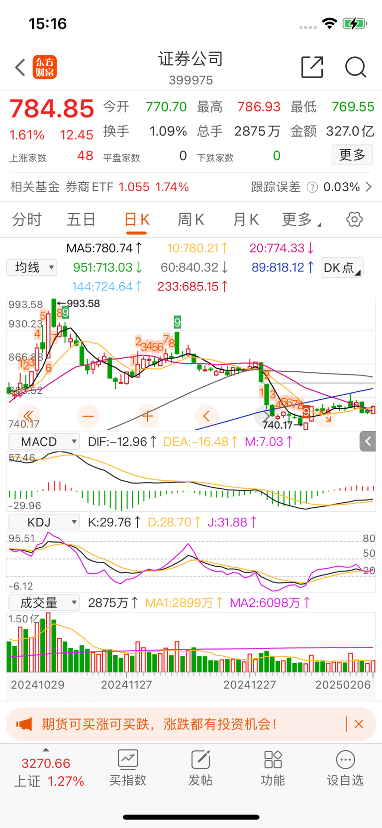 证券板块弱于指数,但方向一致,功不可没,同频共振。