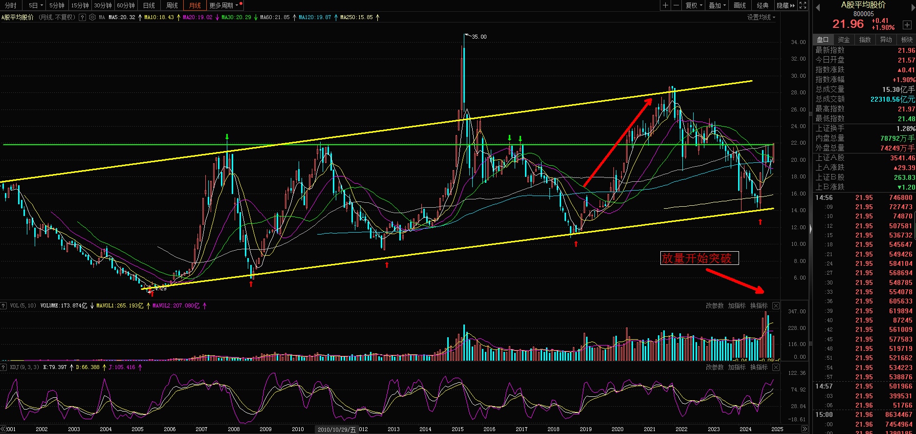 现在从平均股价来看,已经开始放量突破中位数22元,说明最近不断有突破开始强势上涨