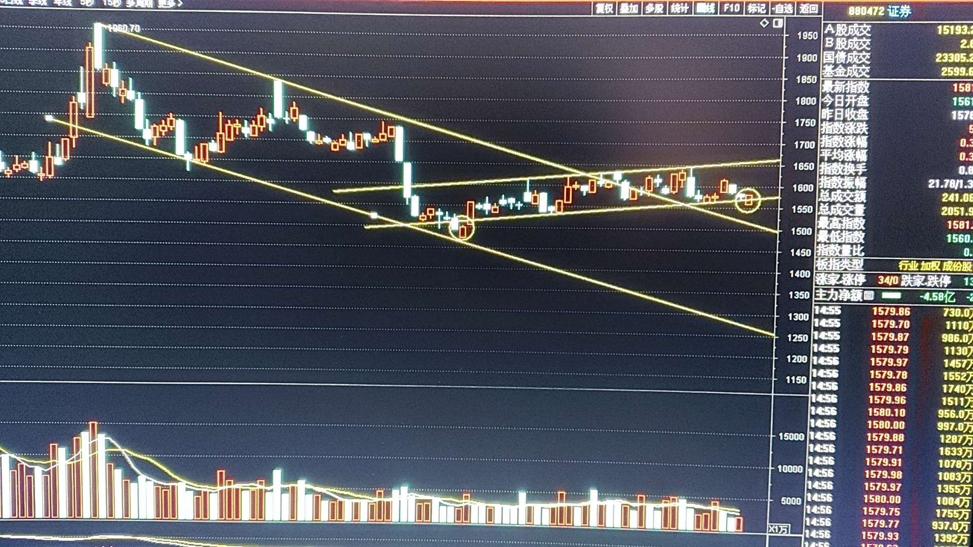 东财60分钟K早盘伴随外盘利空低开至收敛形态下轨,有资金承接后快速拉升,如果放量突破上轨,则意味证券的主升行情开启!