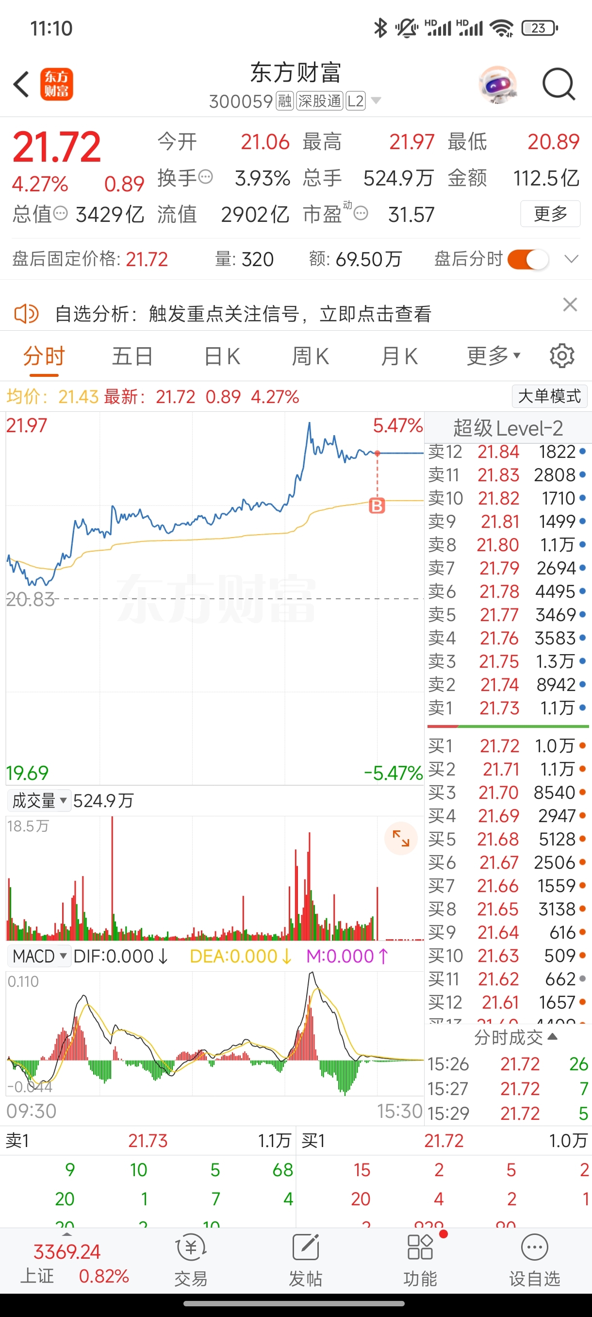 $东方财富(SZ300059)$ 明天能赚1个点不