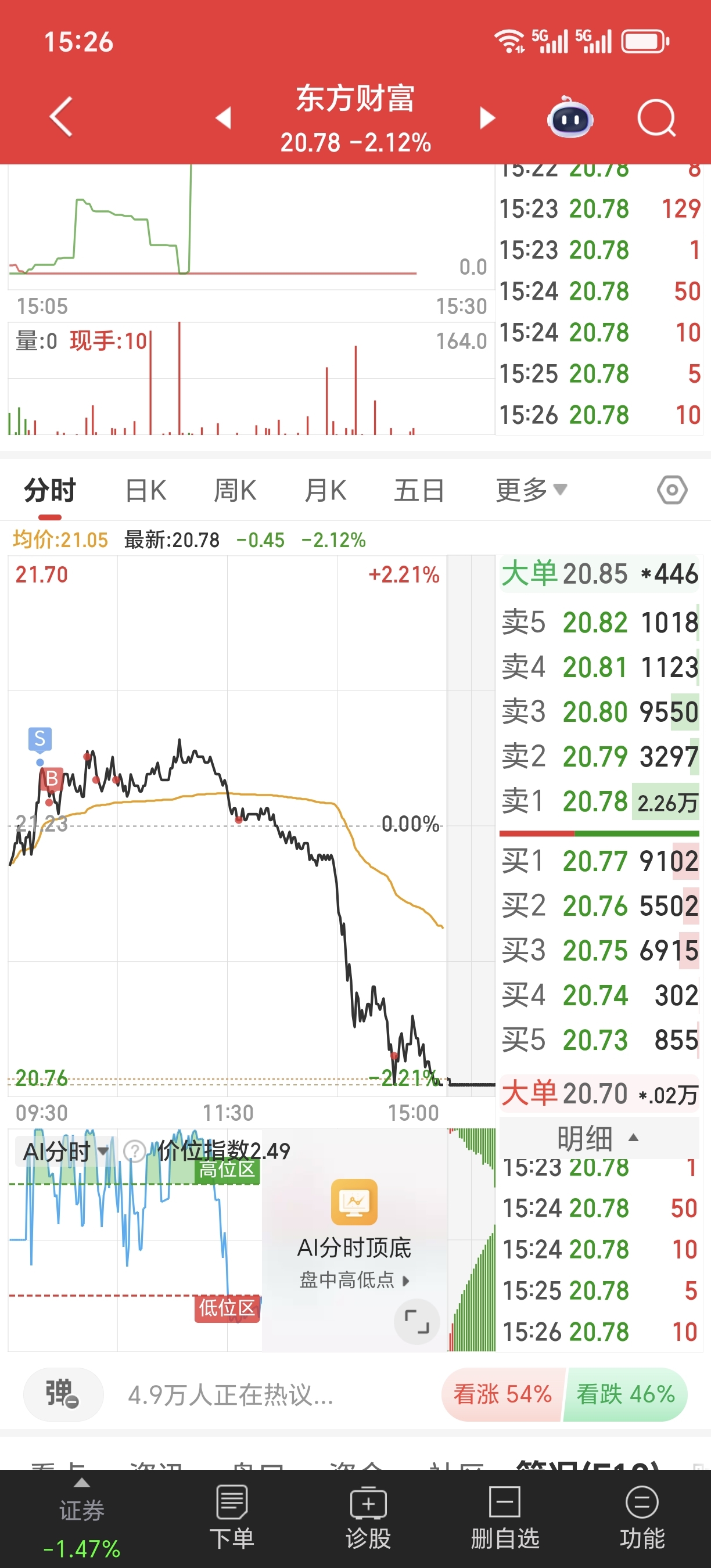 $东方财富(SZ300059)$ 已服,从赚一万多没走,到现在开始出现亏损,今天又是大面一碗!