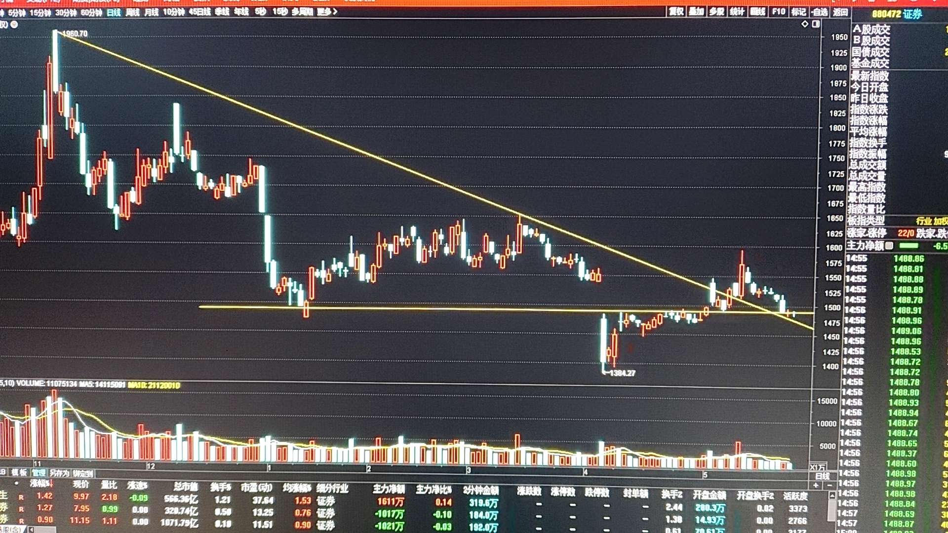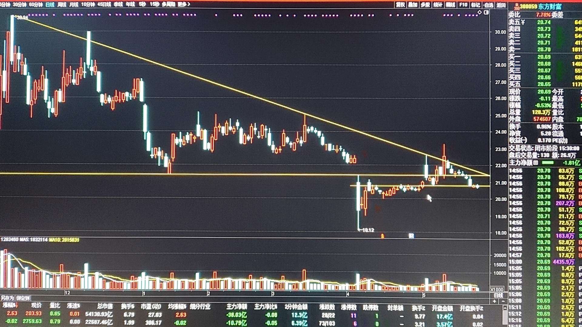 东财日K同样收出地量小阴K,4月29日28亿的成交结束了15个交易日的横盘,选择向上变盘,那今日26.6亿的地量成交,会加速这里的方向性选择,东财日K序列今天出现低6,不收出放量高质量的阳线,很容易见序列低点。至于怎么走,交给市场给出答案!