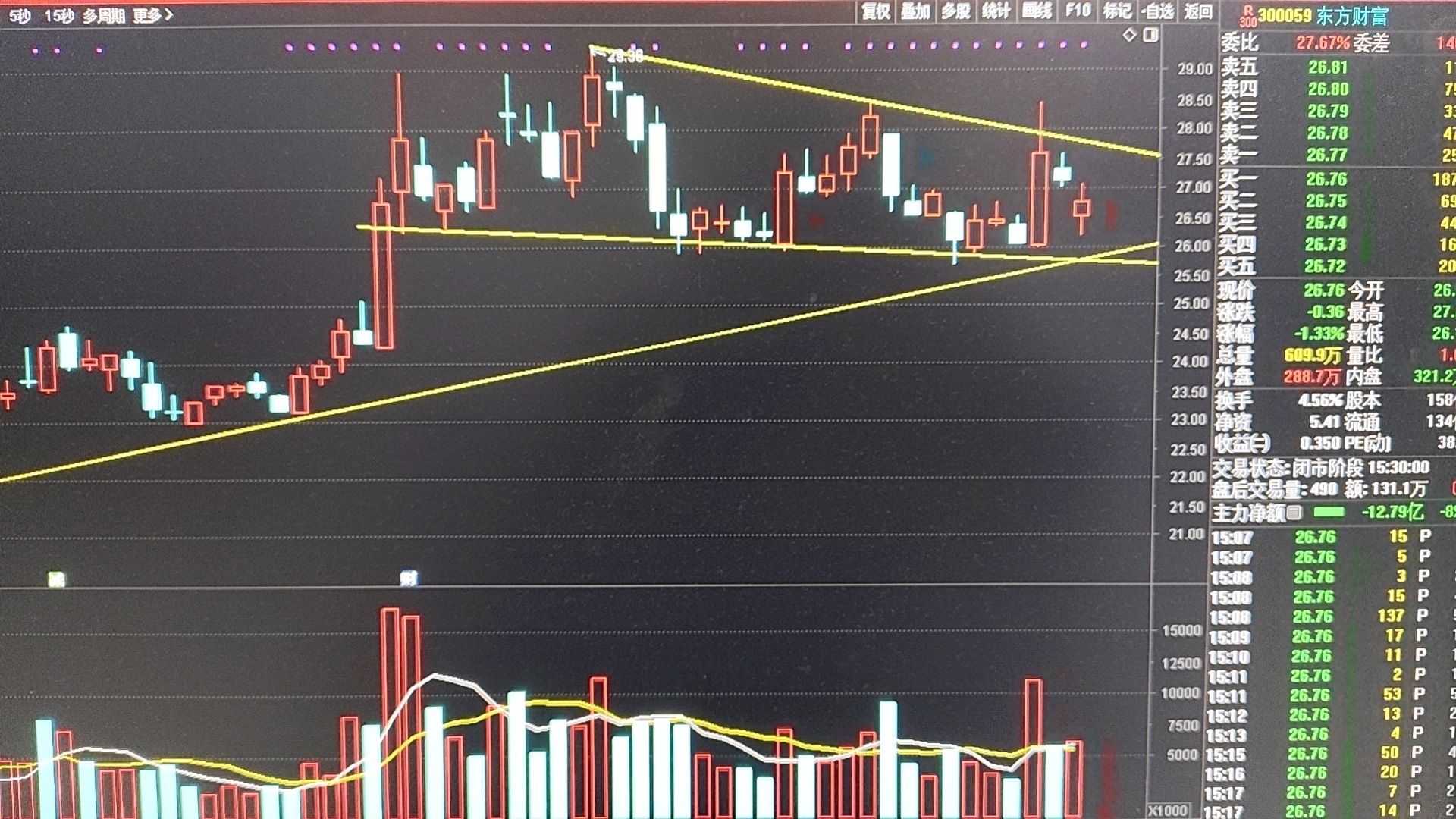 东财日K小幅放量收假阳螺旋桨K线,整体结构处于上升楔形整理未端位置,一旦放量突破楔形上轨,这个自29.36元下来的调整即宣告结束。