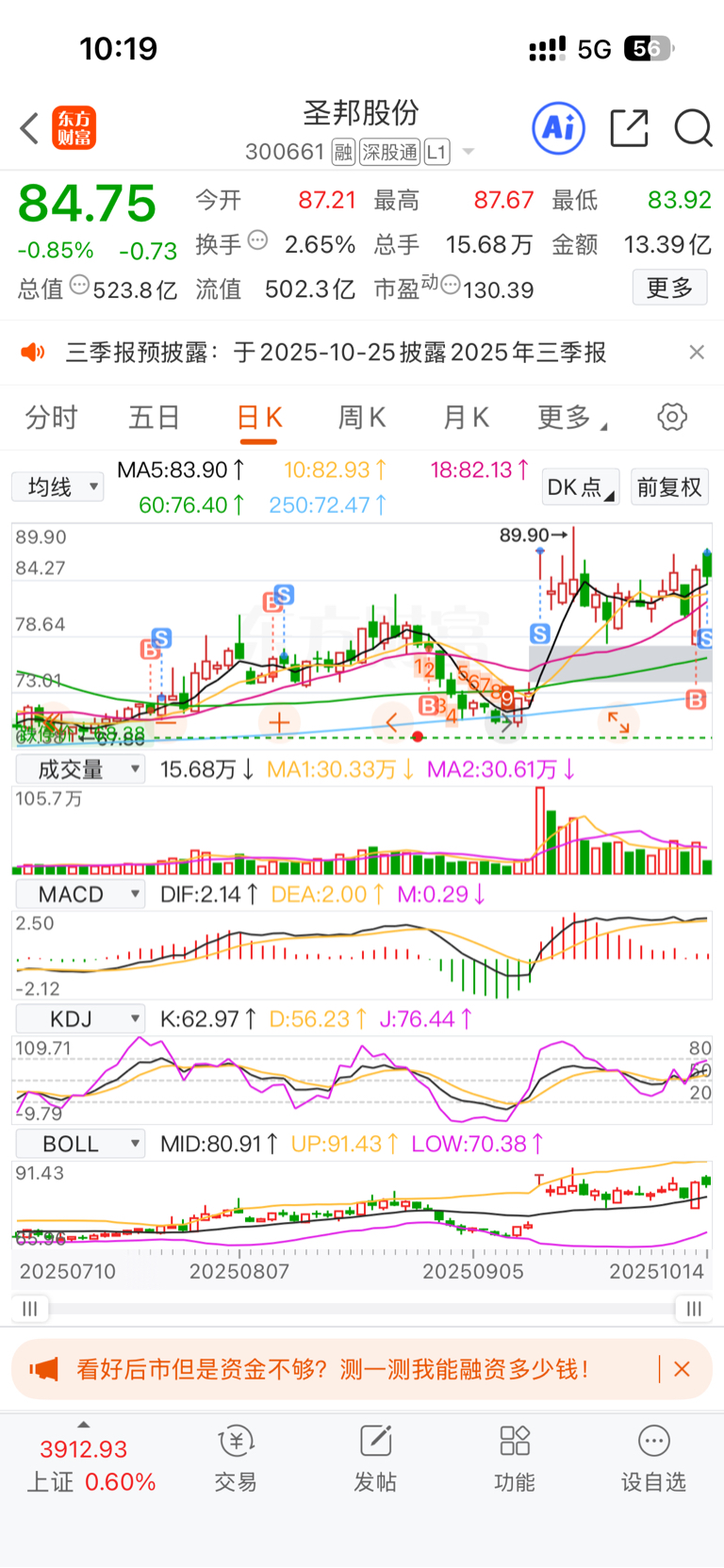 东财昨天割肉换圣邦,爽歪歪