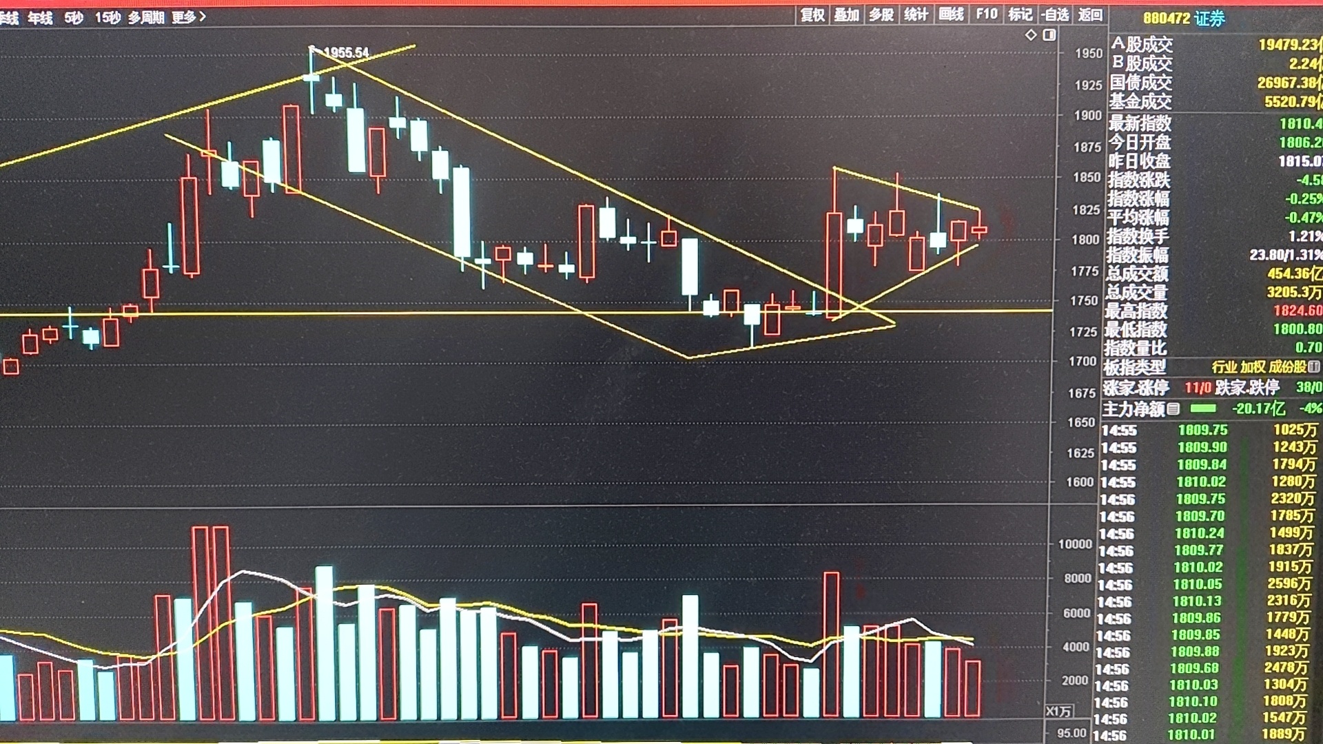东财日K同步收出地量十字星,三日未创新低,可以预见的是空头力量的衰竭,跌得多不是看涨的理由,卖盘衰竭才是!这个旗形箱体内震荡夯实越充分,后市上涨的空间越有想象力!