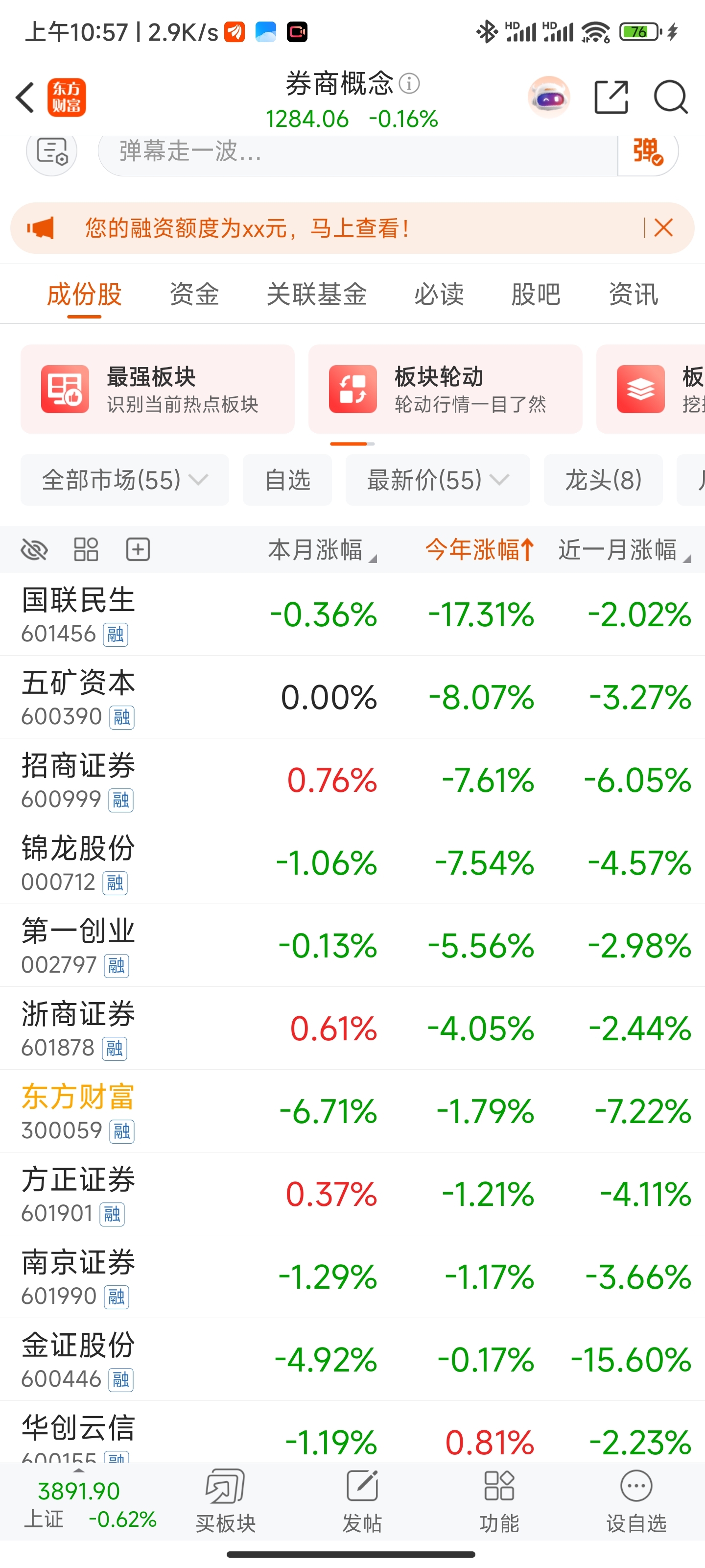 $东方财富(SZ300059)$ 今年涨幅倒数第七