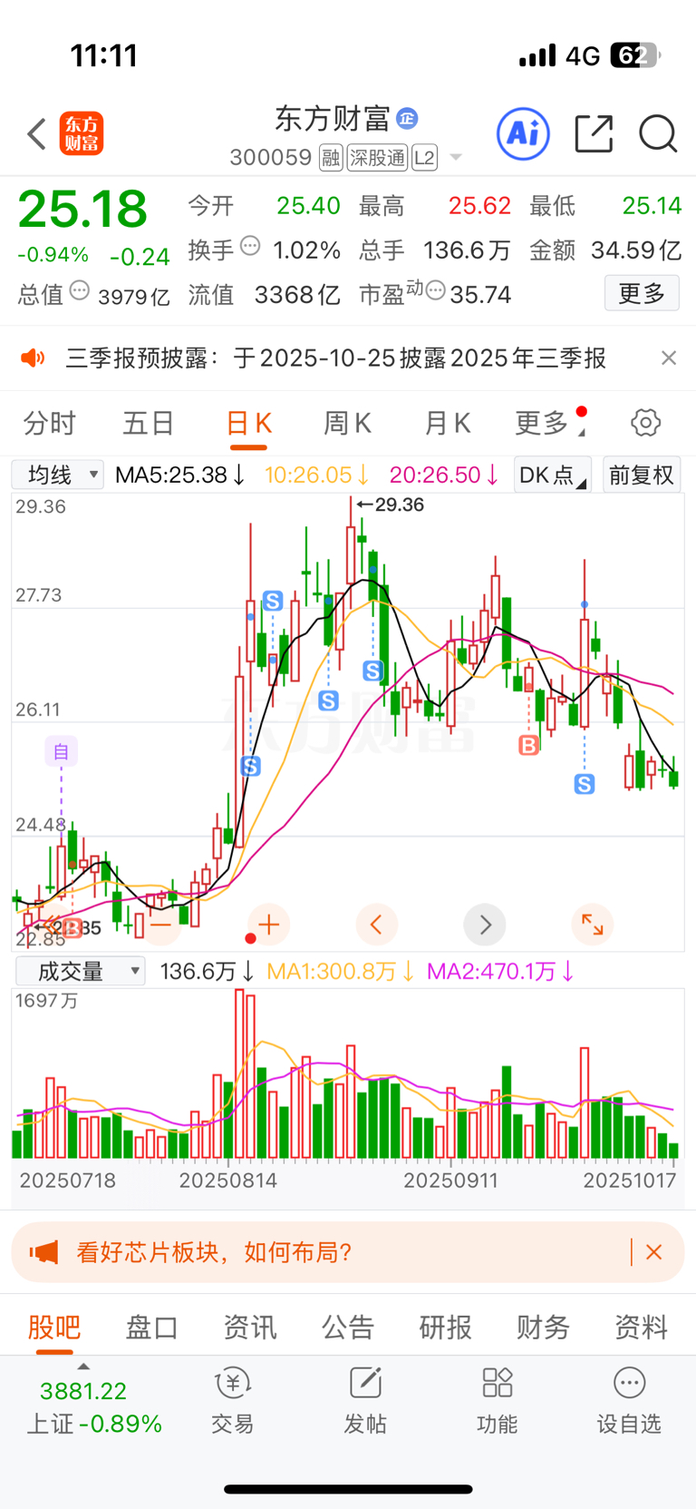 $东方财富(SZ300059)$ 还好跑得快,差点被闷杀了。2025.1月份进来,成本25,平均27.5清仓。