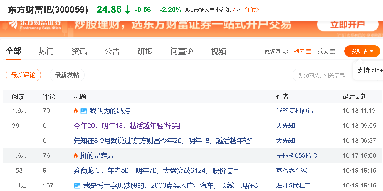 温馨提示: 1.根据《证券法》规定,禁止编造、传播虚假信息或者误导性信息,扰乱证券市场;2.用户在本社区发表的所有资料、言论等仅代表个人观点,与本网站立场无关,不对您构成任何投资建议。用户应基于自己的独立判断,自行决定证券投资并承担相应风险。《东方财富社区管理规定》