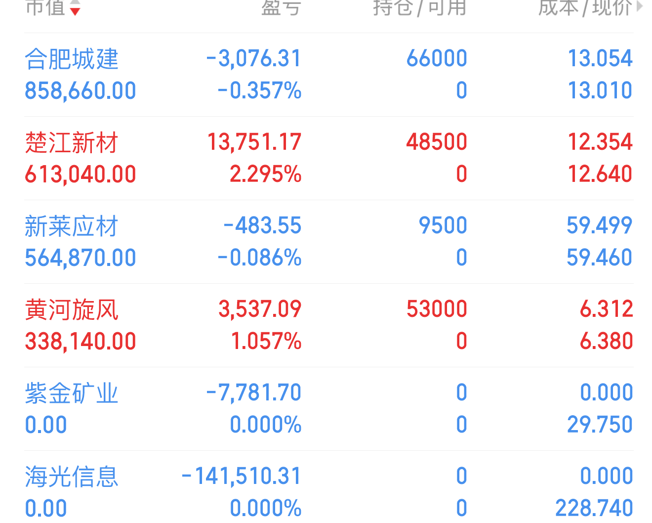 这几天的心情刚好应了最近一首比较火的歌,没做海光前:“本来可以从从容容,游刃有余”,做了海光后“现在匆匆忙忙,连滚带爬”。合肥城建002208:主要还是因为间接投Z长鑫,一般换手隆不会直接走A字。不过目前这个高度已经差不多了,牛哥权当套个力。明天只要不是低开太多就没事。