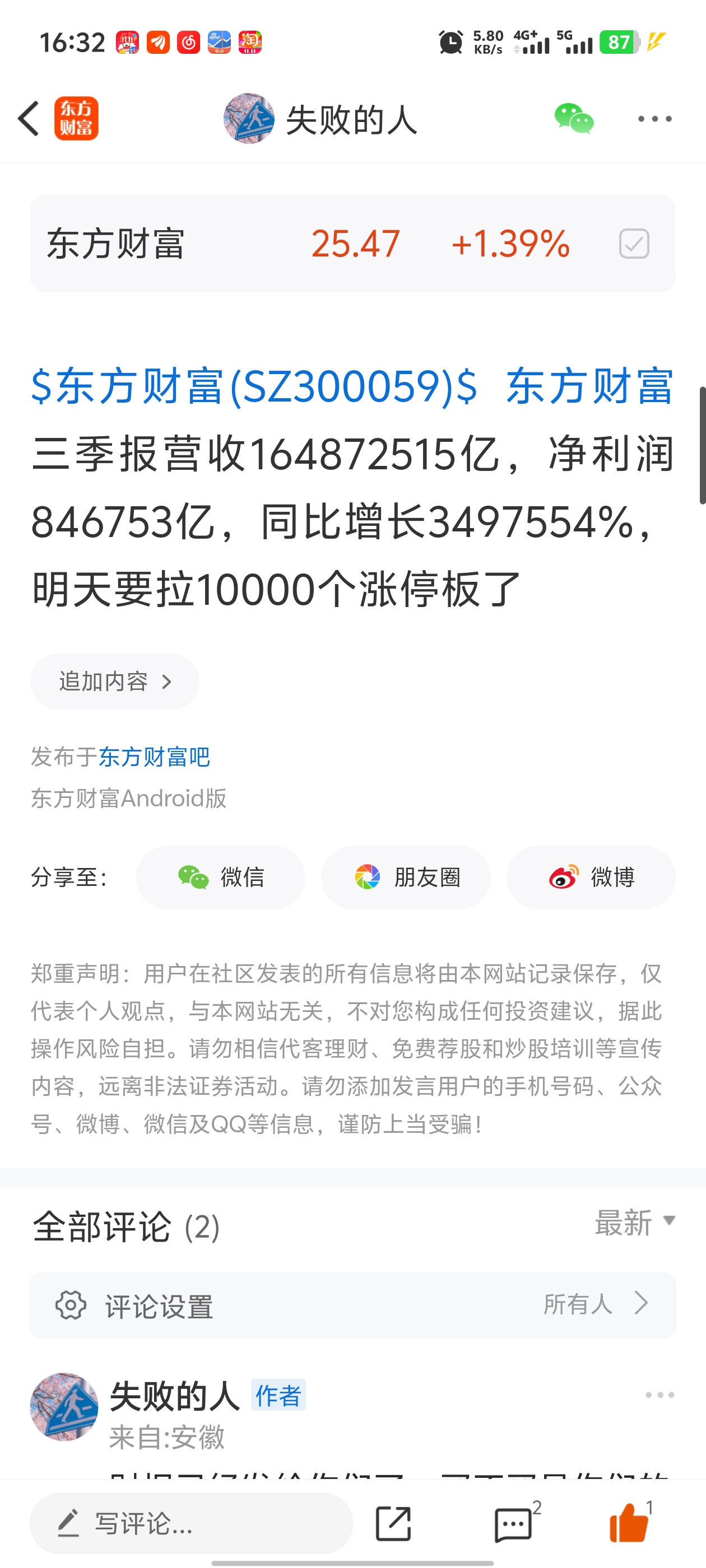 温馨提示: 1.根据《证券法》规定,禁止编造、传播虚假信息或者误导性信息,扰乱证券市场;2.用户在本社区发表的所有资料、言论等仅代表个人观点,与本网站立场无关,不对您构成任何投资建议。用户应基于自己的独立判断,自行决定证券投资并承担相应风险。《东方财富社区管理规定》