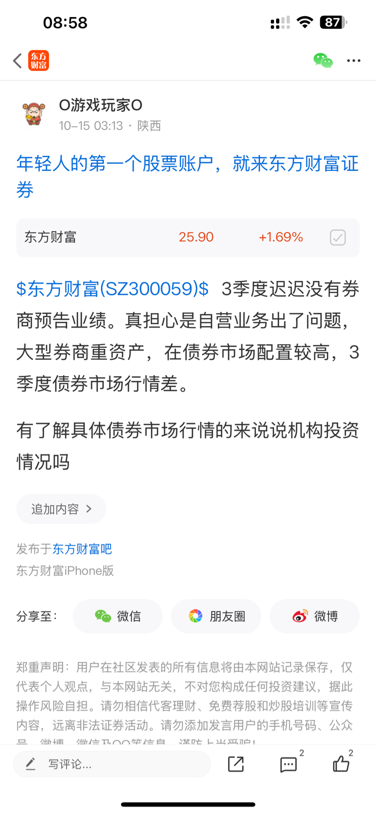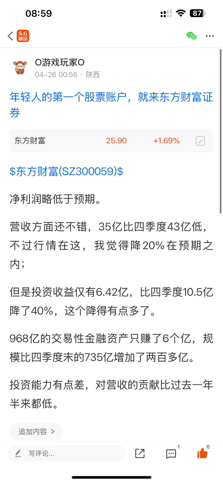 $东方财富(SZ300059)$ 业绩只能说是在预期之内,没有超预期,与此前机构发布的研报预期差不多,而且就全年来看的话,四季度还有压力。