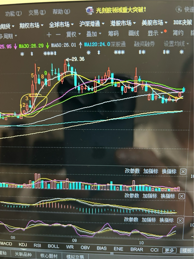 $东方财富(SZ300059)$ 不抱怨没大涨了。明天看疗效吧。今天的假阴线是不是黄圈儿的位置一样?