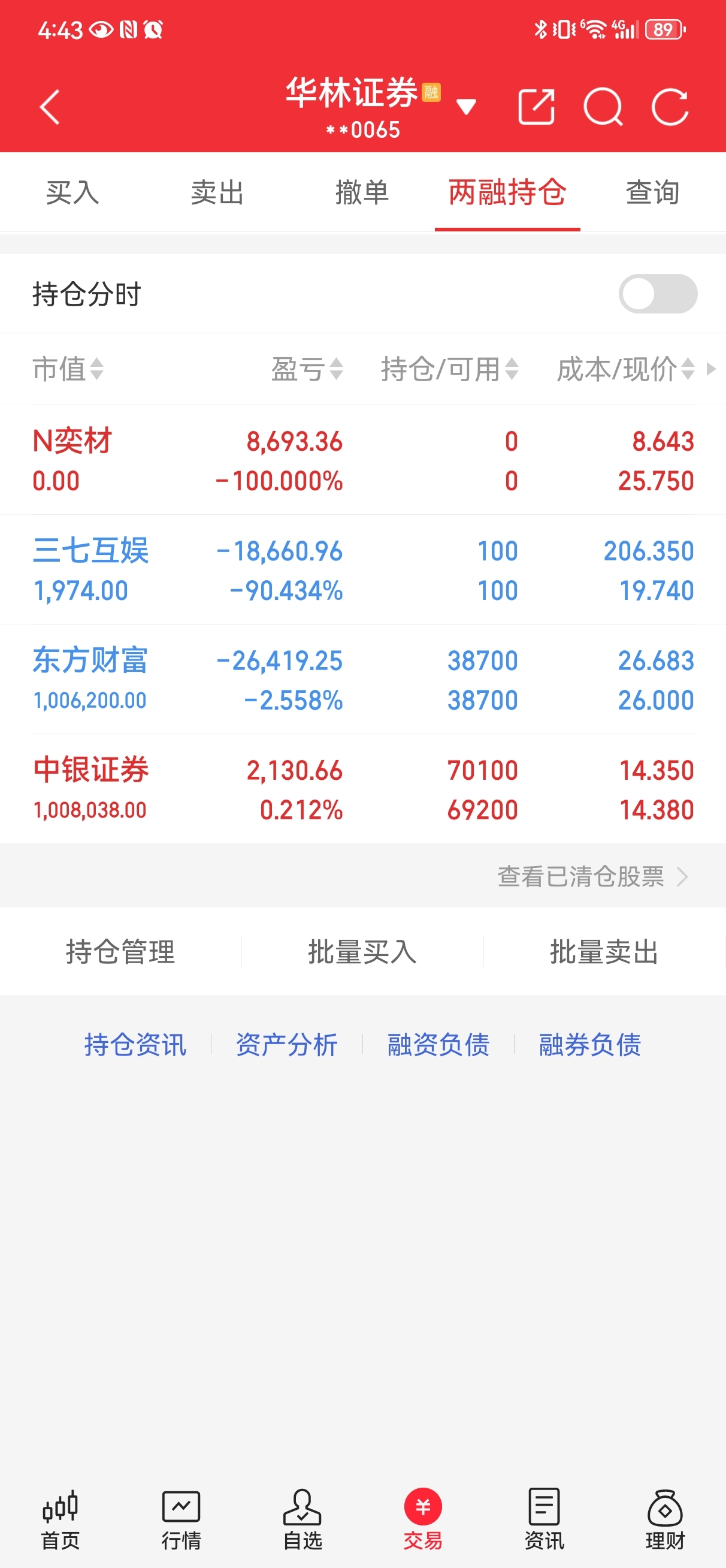 靠着新股勉强收红0.5个,n-奕材早盘开盘高开360%没有去操作,下午200%卖出的时候,新股收益0.8个,证券继续躺着,等着券商的风吹来吧,不想动。$东方财富(SZ300059)$ $中银证券(SH601696)$