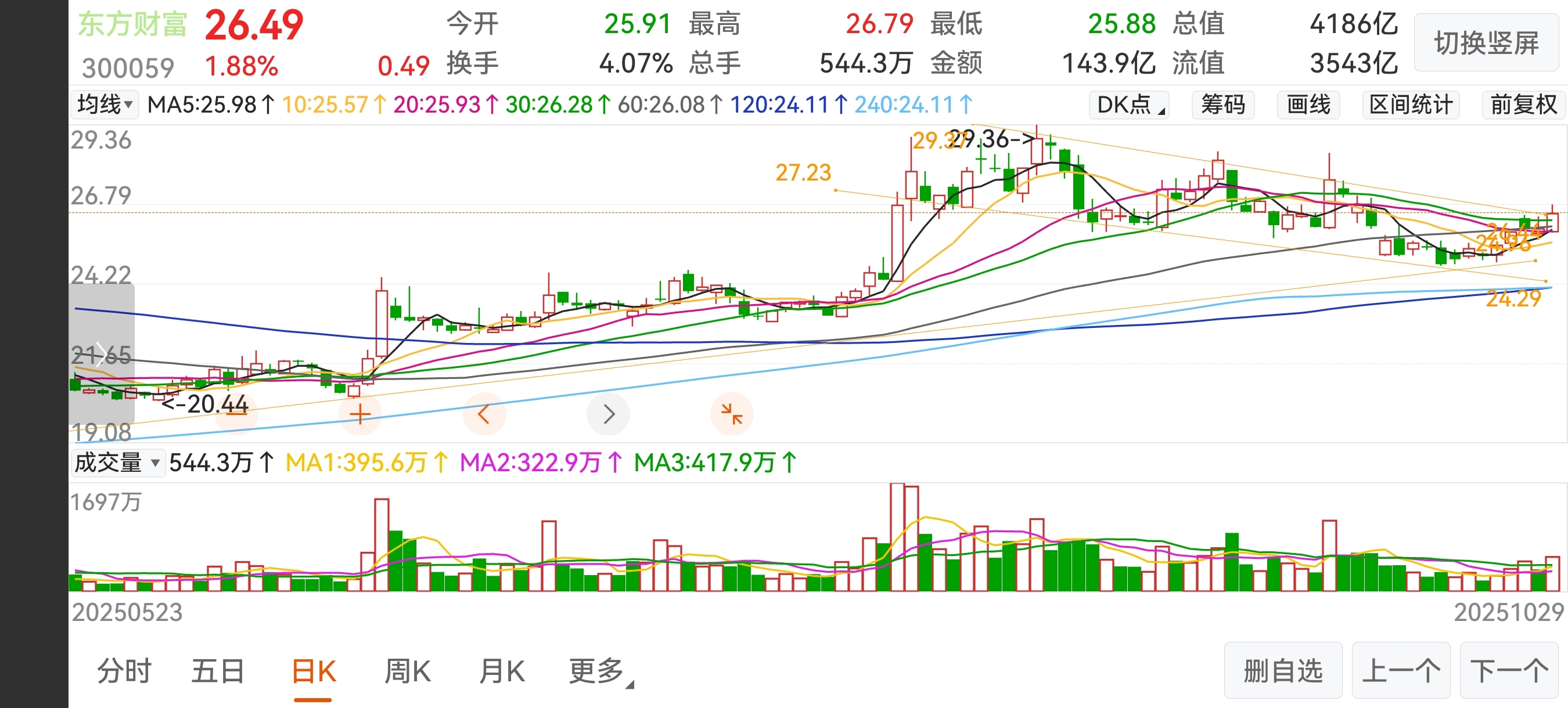 $东方财富(SZ300059)$ 短线是不是到了压力位