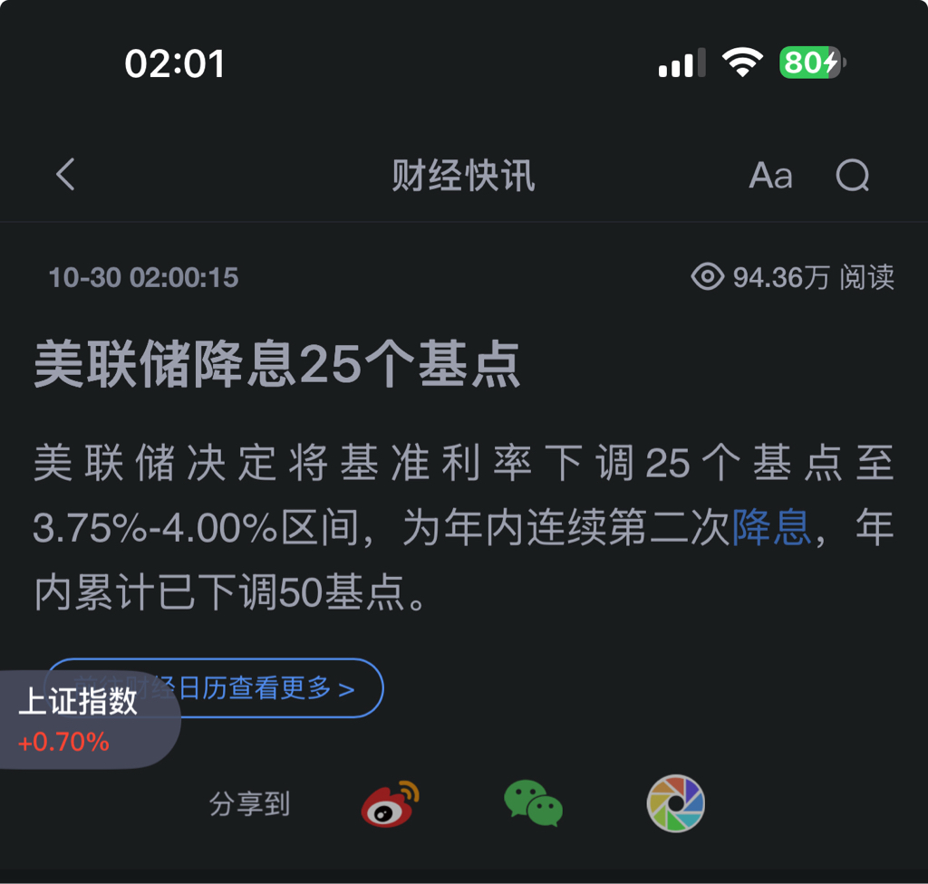 深夜重磅利好美联储宣布降息25个基点今天利好券商!