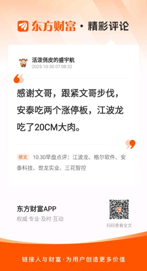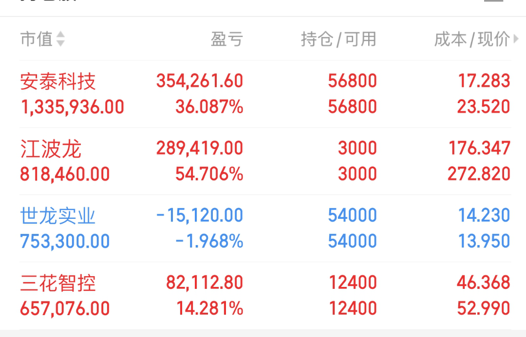 波段里为数不多的慢牛股了哦,我也是拿了接近半个月,可把我耗懵了,一般人真拿不住这种,从被套到解套到盈利,其中的心酸又有几个人懂啊,差不多这个位置也要出了,我反正知足了,其他人怎么样的我不管,还是回归纯短线股吧,切勿追高现在,否则调整起来我怕各位接受不了,没有把握的时候就不要去硬融了。