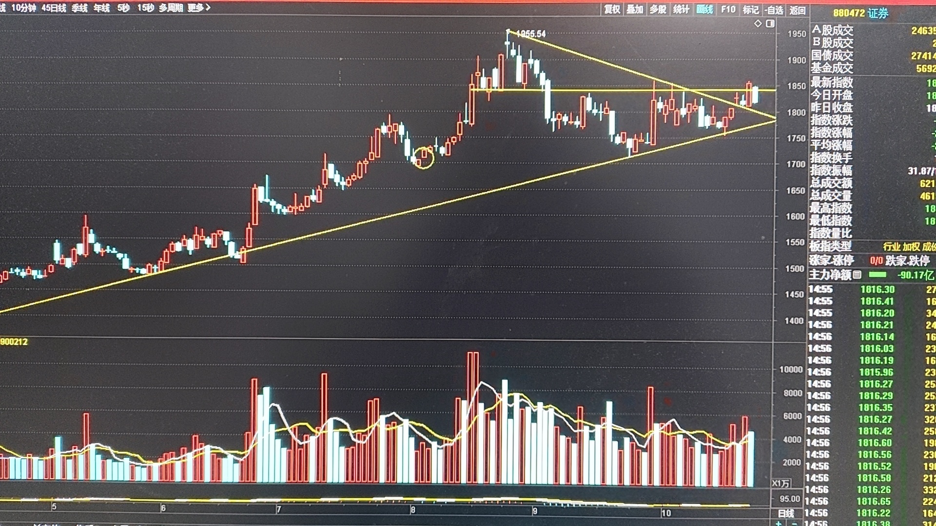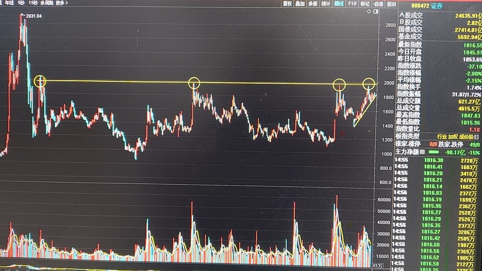 大级别证券周K图,从15年11月证券反抽1960点高点后,近十年共有三次机会再次挑战1960点,分别是20年7月,去年11月8日,和今年8月29日,目前在周K的上涨趋势没被破坏的前提下,有理由相信近期的夯实和抗涨就为这个重压力突破做准备!