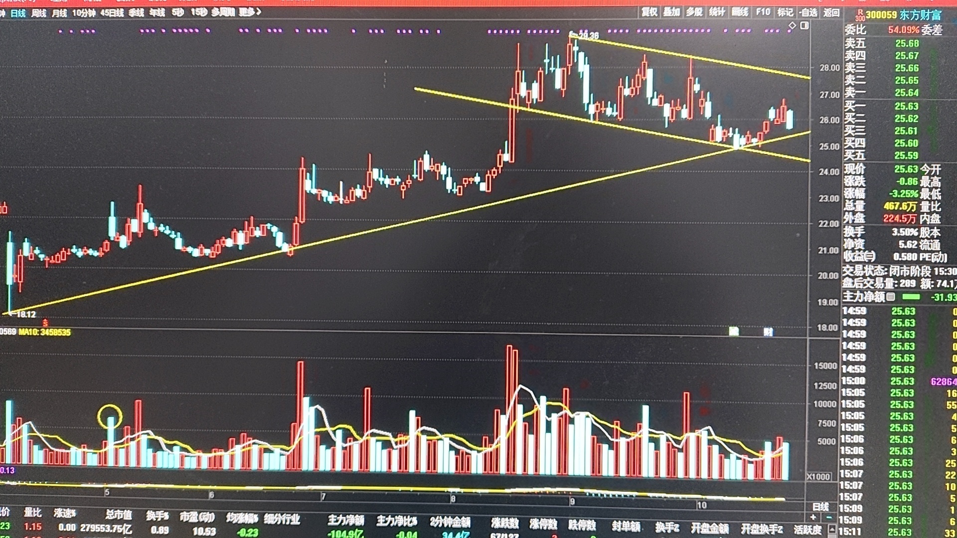 东财日k同样收缩量小中阴,直接吃掉近4天的涨幅,明日下方一个低开即可触及上涨趋势线支撑,如果今天是主力跑路了,后面将会继续调整为主,那么你也因该跟随卖出,如果今天卖出的是韭菜,那么你无需成为那乌合之众!!