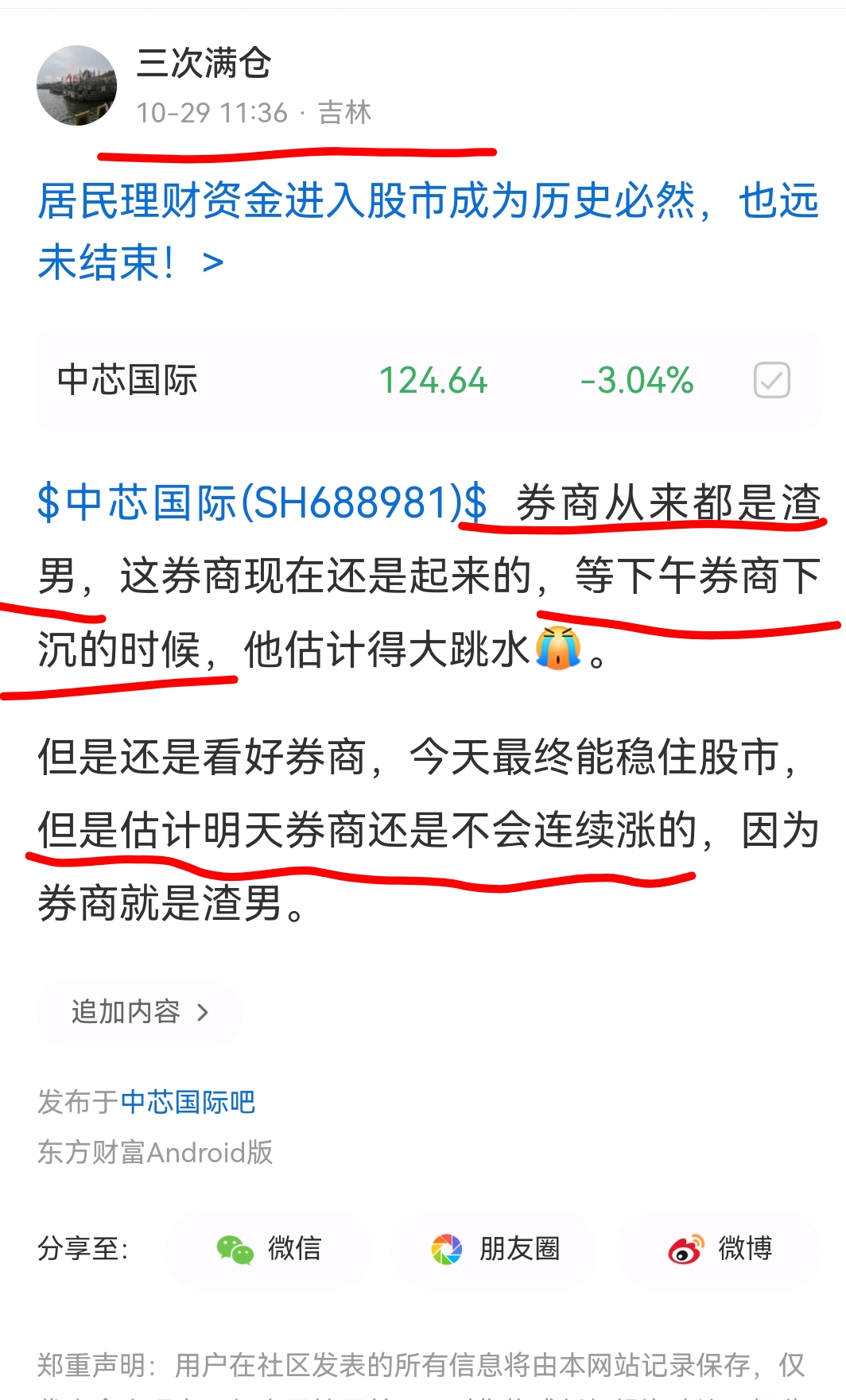 温馨提示: 1.根据《证券法》规定,禁止编造、传播虚假信息或者误导性信息,扰乱证券市场;2.用户在本社区发表的所有资料、言论等仅代表个人观点,与本网站立场无关,不对您构成任何投资建议。用户应基于自己的独立判断,自行决定证券投资并承担相应风险。《东方财富社区管理规定》