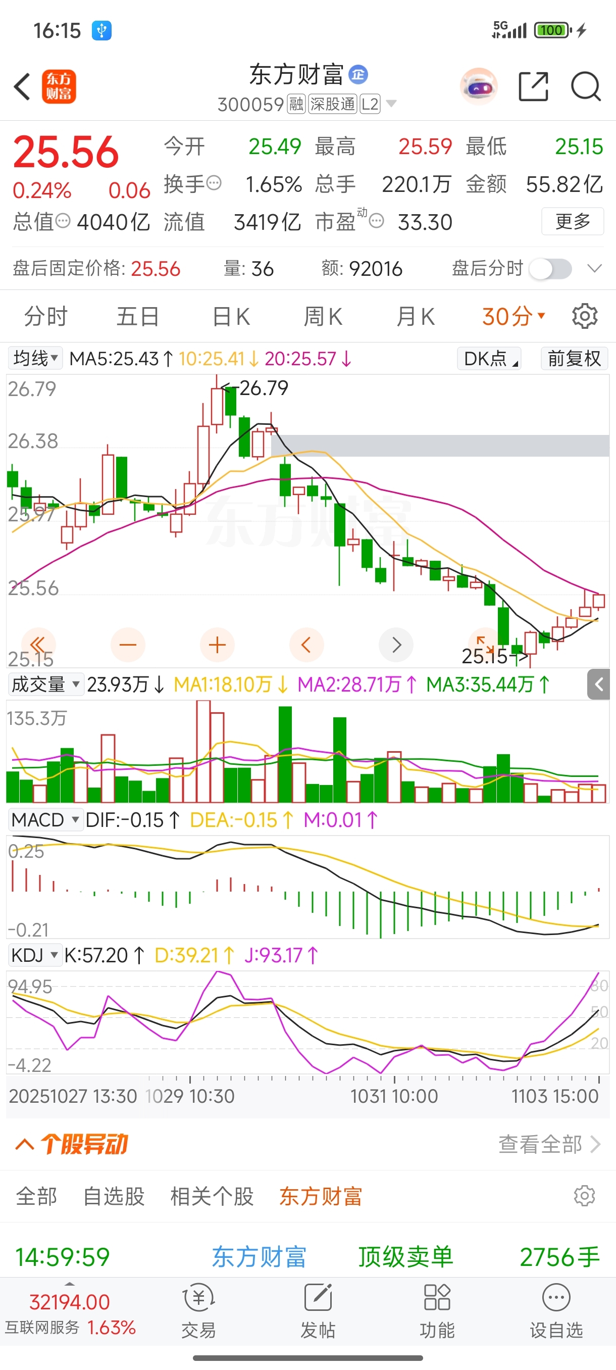 $东方财富(SZ300059)$ 底背离形成,明天看涨。