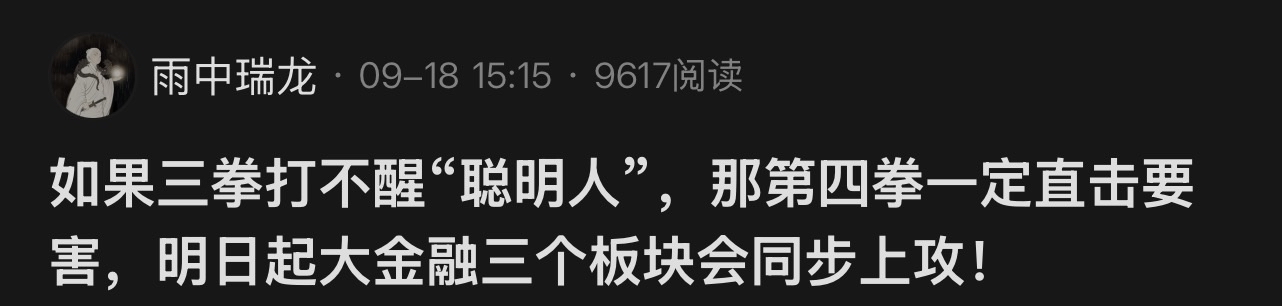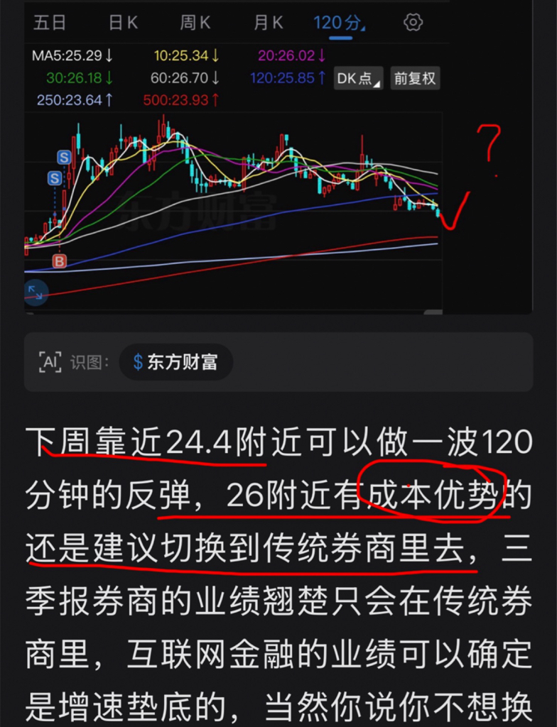 对于近期还在一直看多互联网券商,看空科技股的各位来说,我挺好奇的,互联网现在不算科技的一部分了吗?那段时间指南针都翻倍了,只是东财没跟上,为什么就觉得互联网券商没涨呢?其次到近期才开始弱于板块下跌难道不正是因为前期那么多赌三季报业绩大超预期的承接盘才能把股价维持到现在吗?但事实是互联网券商的优势已经不在了,业绩也被传统券商超越了,整个行业已经开始重新估值了。就因为这样,证券板块才走的一蹶不振,进三退二,退三进二。
