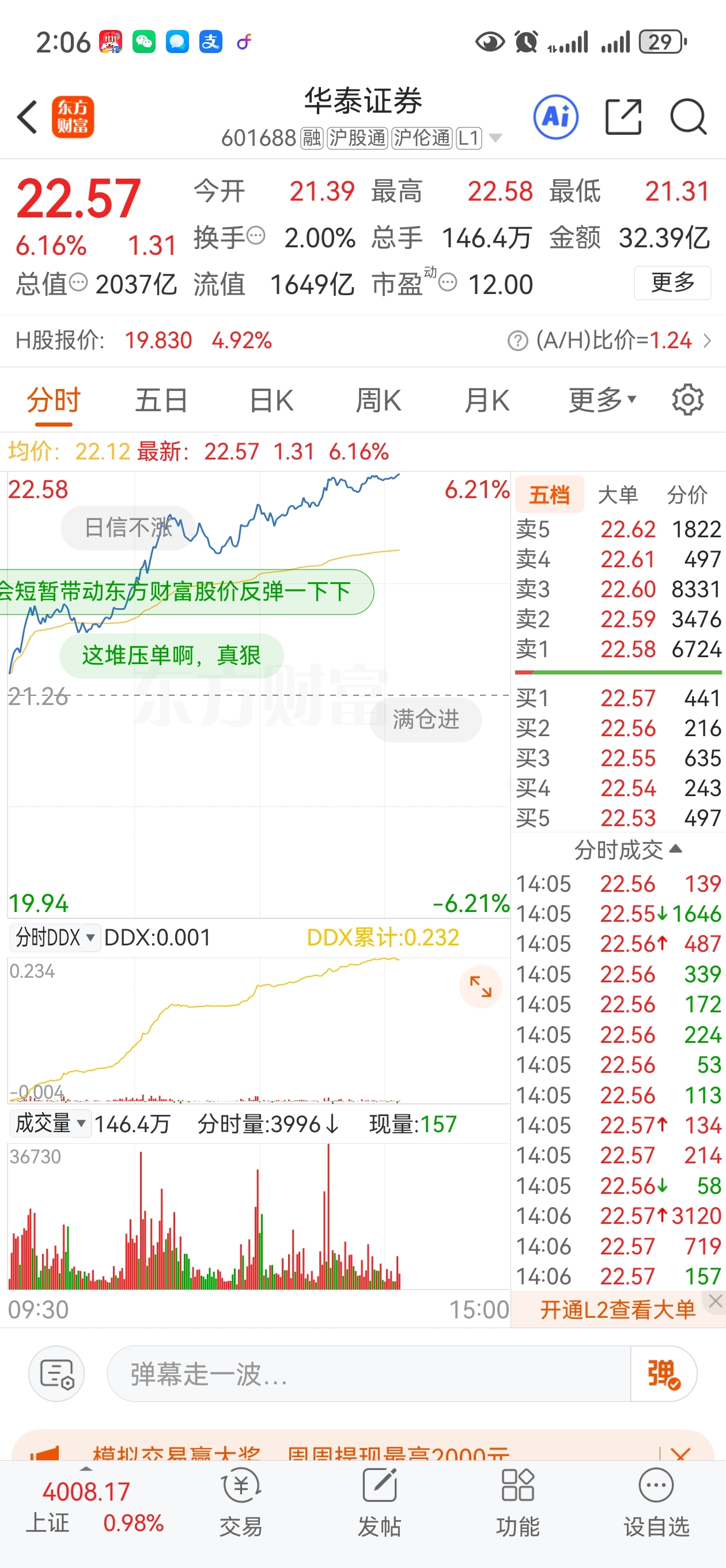 华泰证券机构抱团拉升,慢牛行情,东方财富大股东减持,滞涨