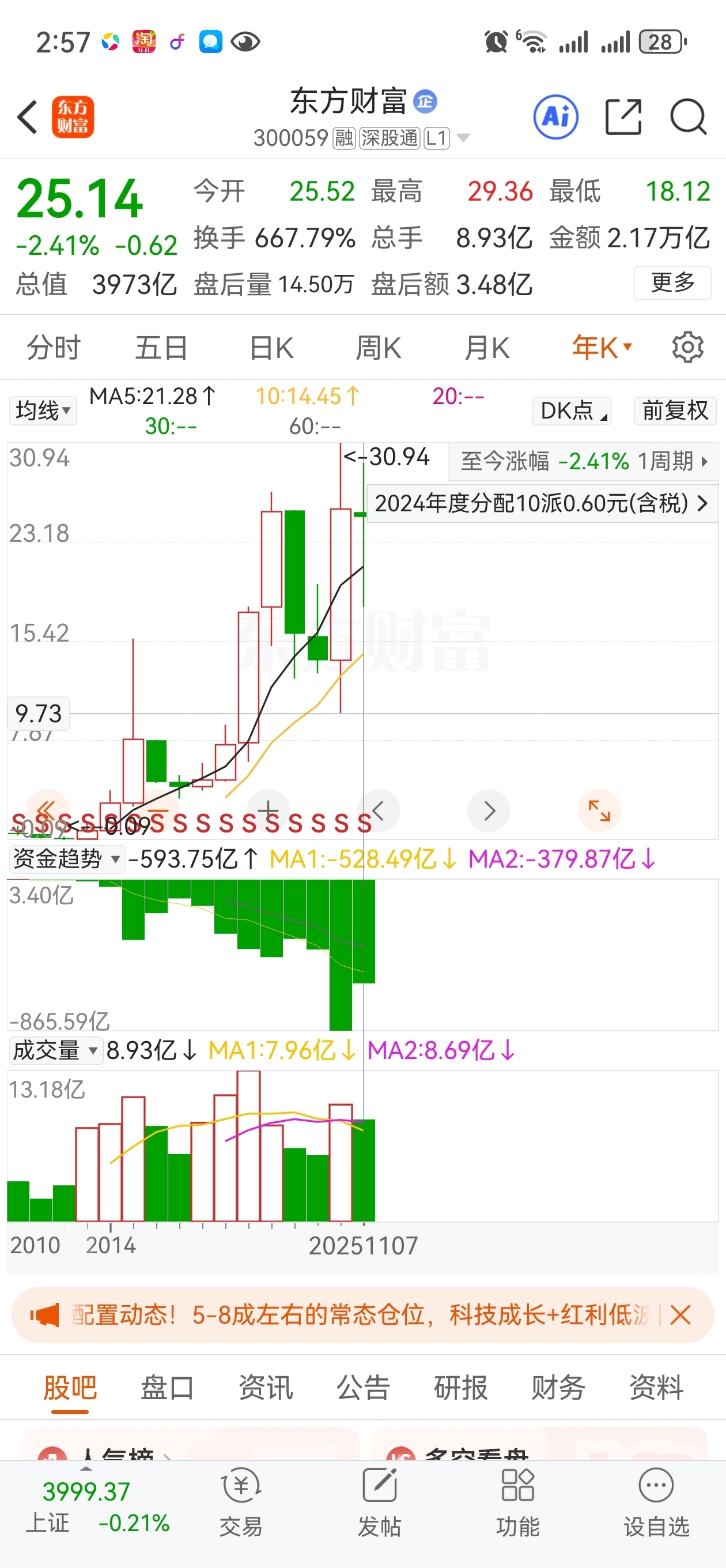 $东方财富(SZ300059)$ 2025年牛市,目前亏损-2.41%,立帖为证