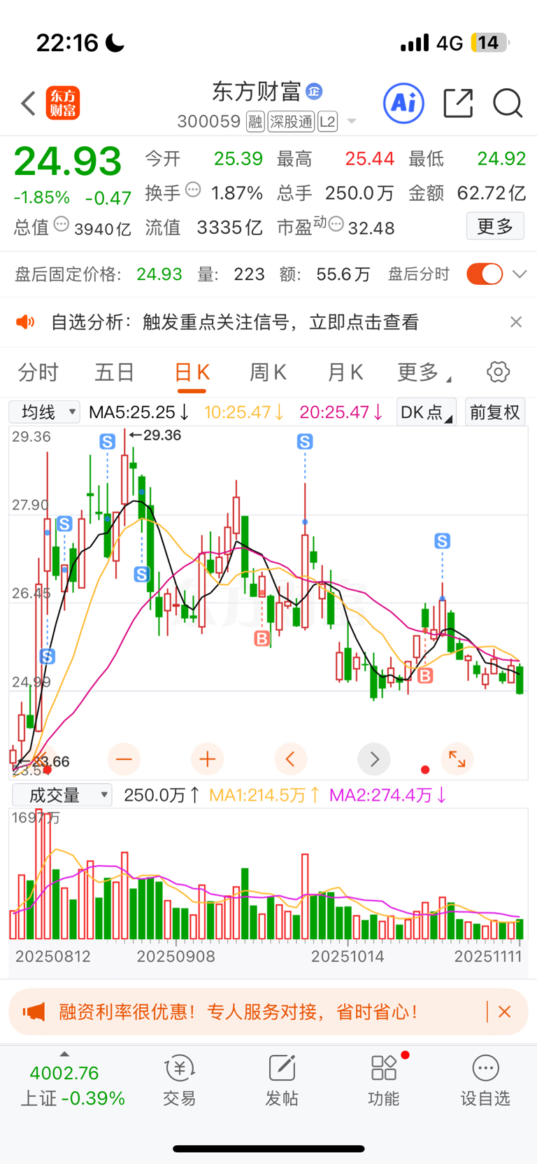 $东方财富(SZ300059)$ 怎么一浪比一浪低啊