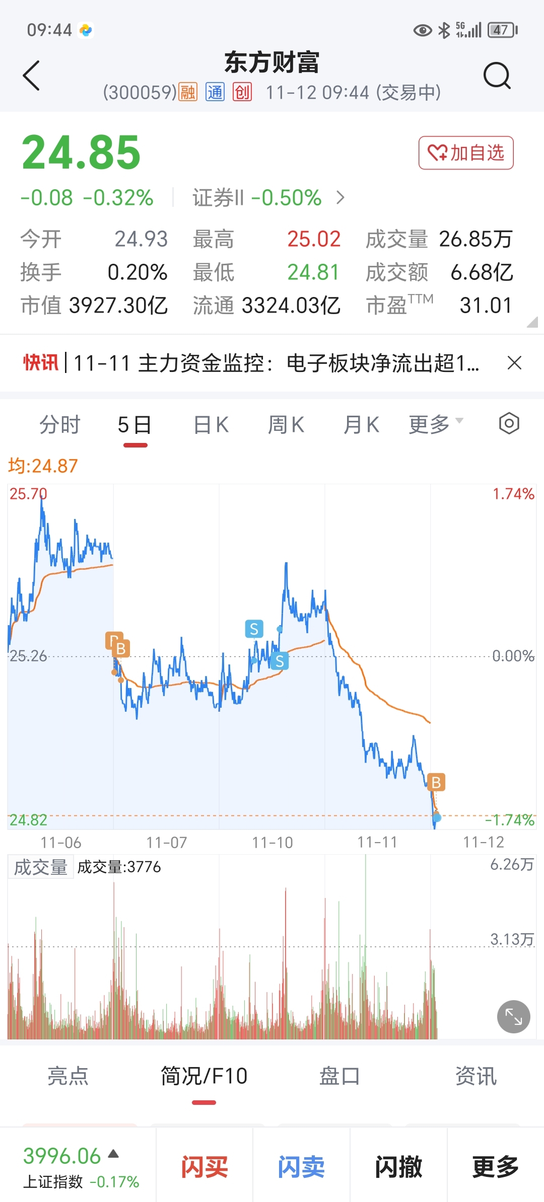$东方财富(SZ300059)$ 没卖到高点,下次不能太恐惧了