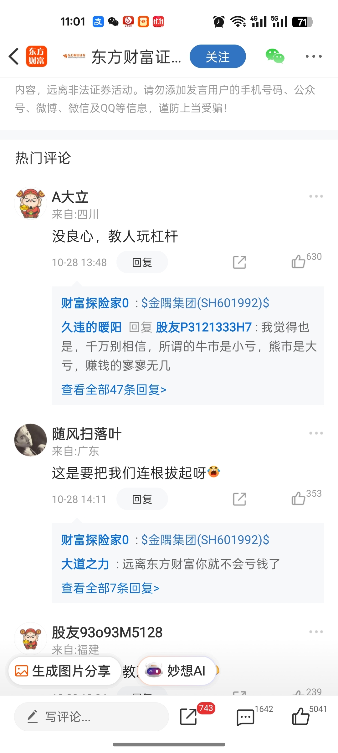 温馨提示: 1.根据《证券法》规定,禁止编造、传播虚假信息或者误导性信息,扰乱证券市场;2.用户在本社区发表的所有资料、言论等仅代表个人观点,与本网站立场无关,不对您构成任何投资建议。用户应基于自己的独立判断,自行决定证券投资并承担相应风险。《东方财富社区管理规定》