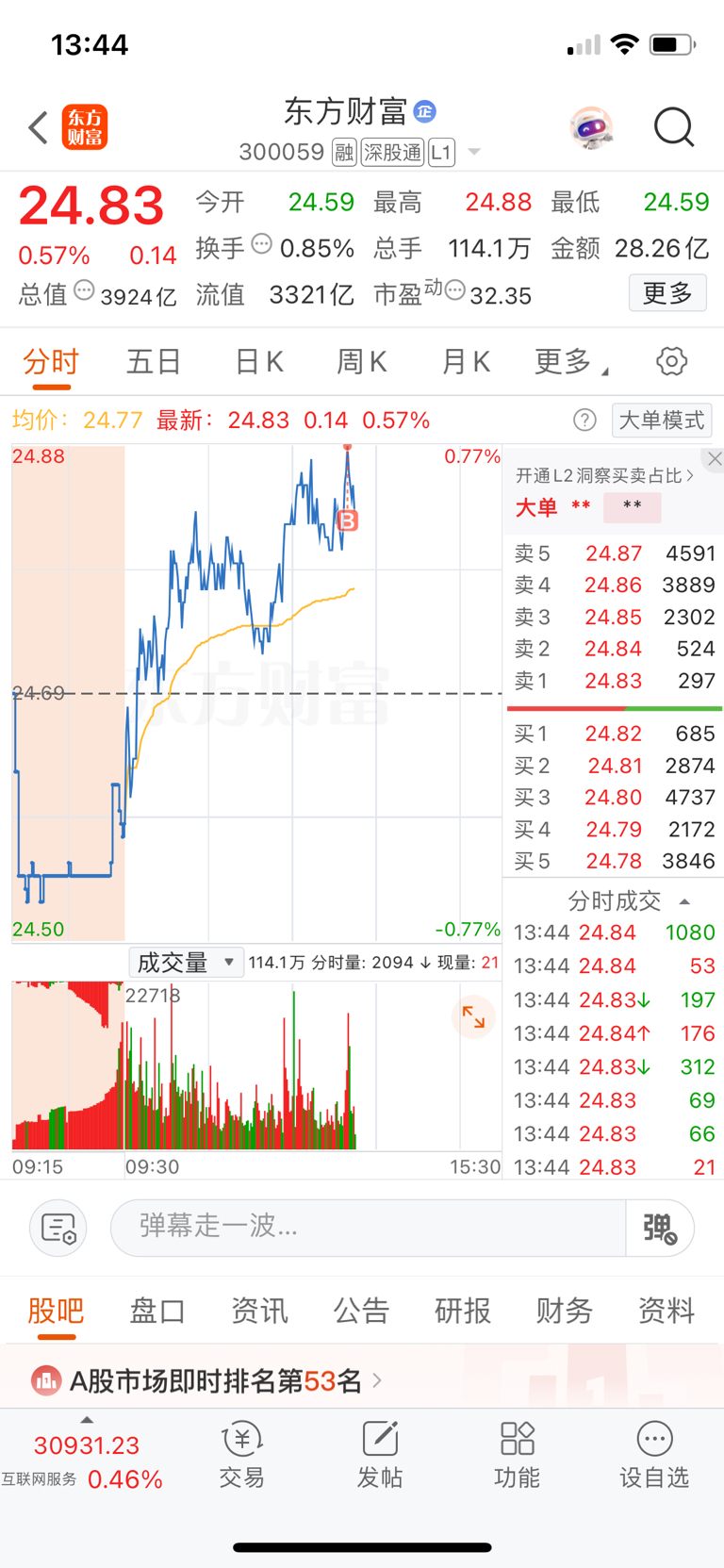 $东方财富(SZ300059)$ 进来就是最高点?我错了