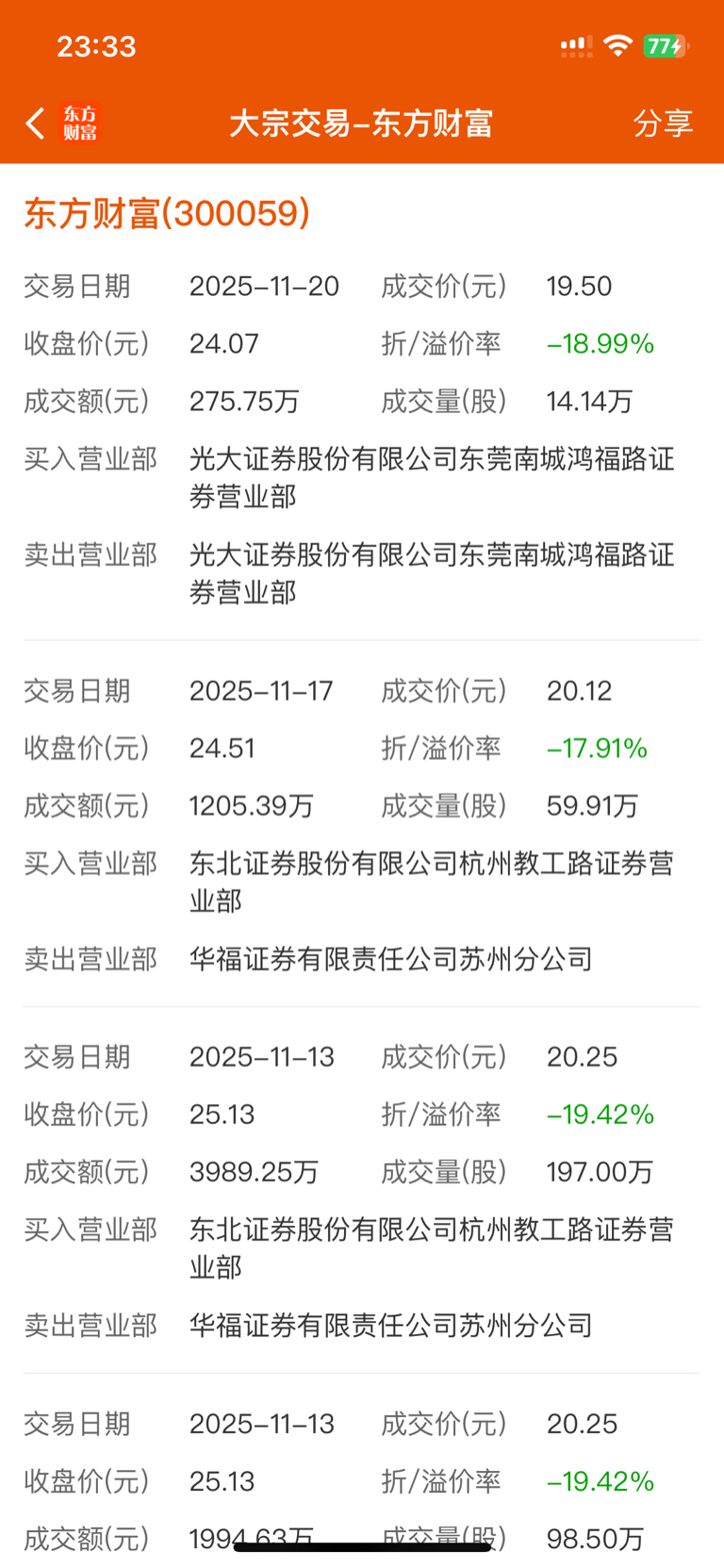 $东方财富(SZ300059)$ 都折价卖了,这么迫不及待