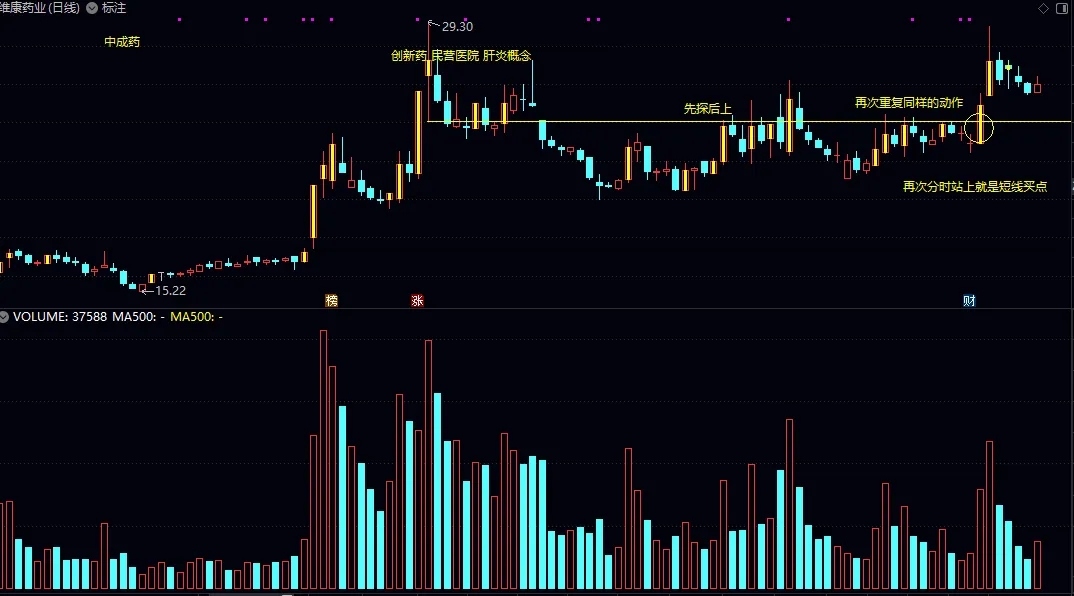 一只个股只要有主力存在,它在做盘过程中,都会有一个做盘的基准价,然后会对该价格有针对性冲击(见图)。