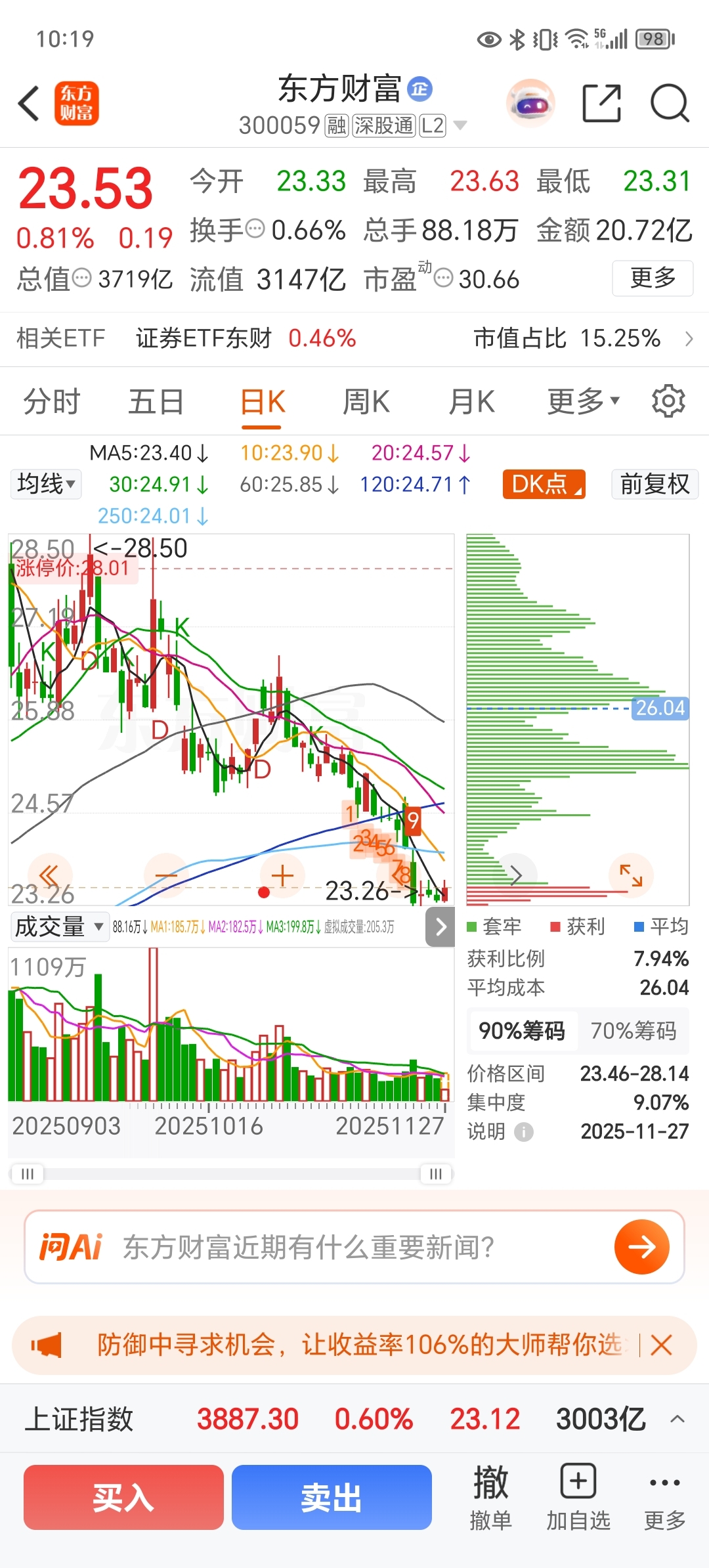 看样子可以建仓了,不是持有龙一龙二,我高低建仓东方财富了