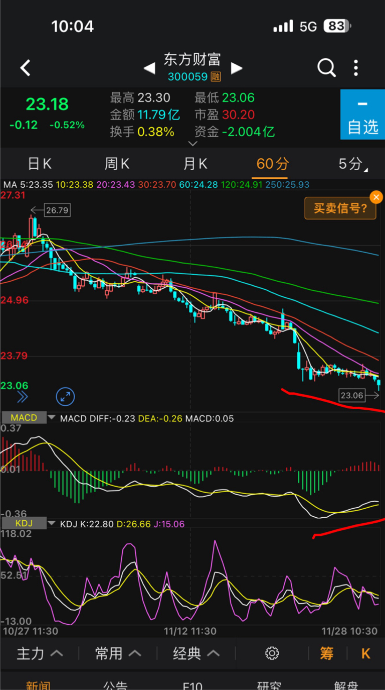 东财60分钟、120分钟线都出现底背离,还能跌到哪里?就算再要跌,也要先出一根中