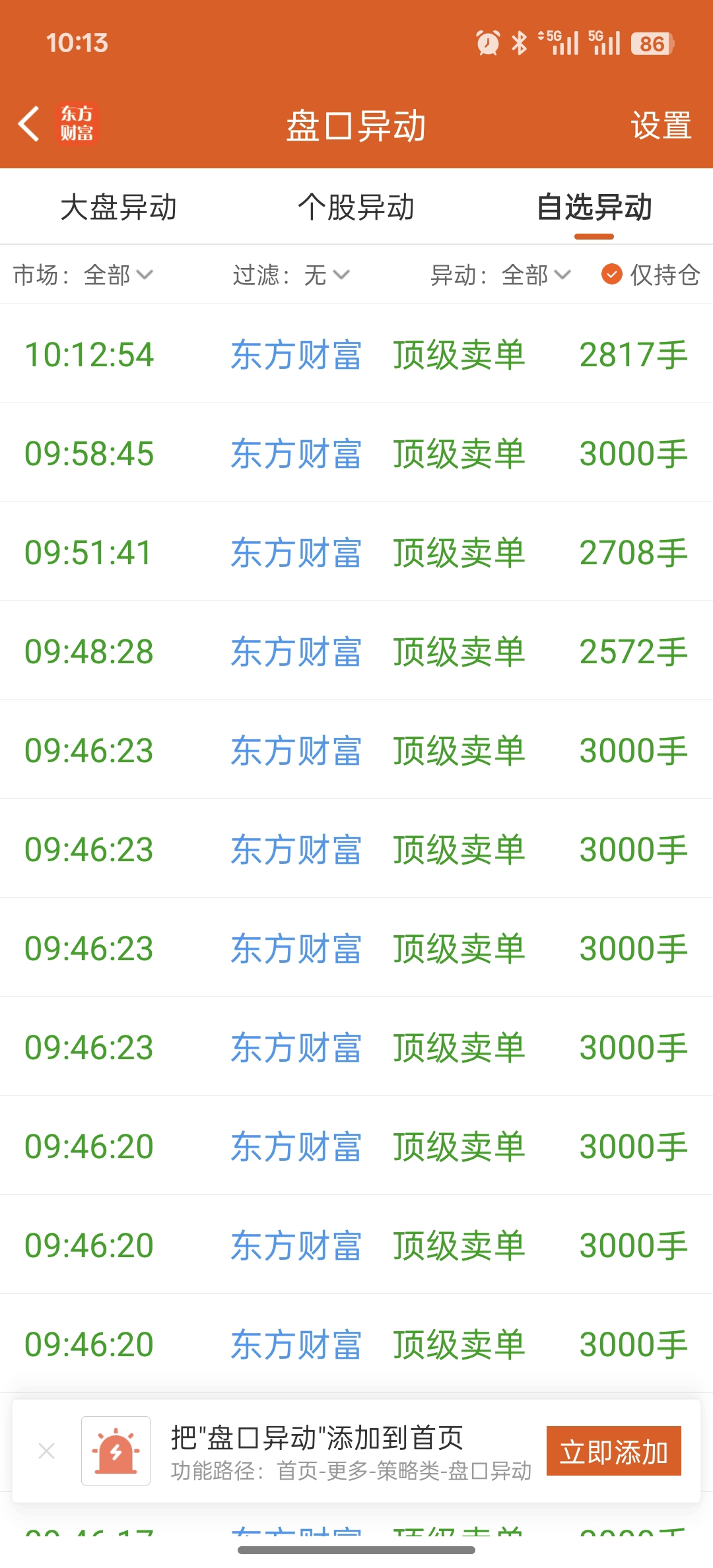 $东方财富(SZ300059)$ 开盘到现在基本都是超级卖单,基本没有买单,利空太大不能买主力一直出货,今天继续看跌
