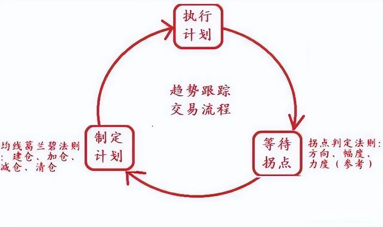 有了成熟的趋势跟踪系统,我们就可以按照下面的流程来进行交易:
