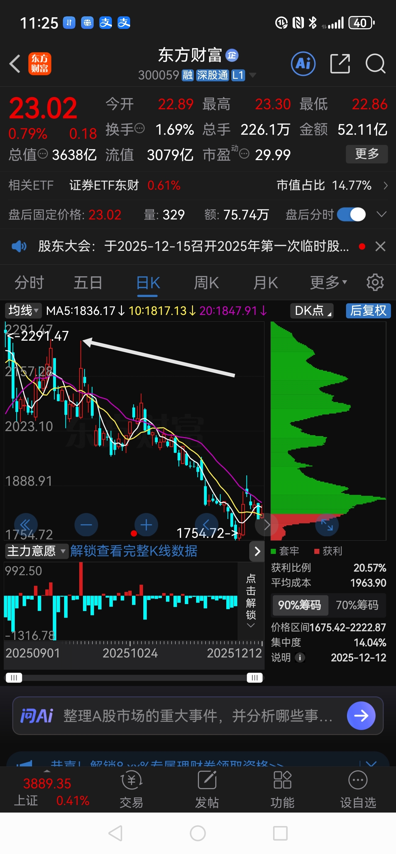 $东方财富(SZ300059)$ 2010年3月19日上市的东方财富,目前后复权价是2291元。券商是周期股,一旦遇上天时地利人和的时候,会涨到你找不到北。目前科技板块轮回涨,少量参与券商为宜,谁知道什么时候会起风呢?