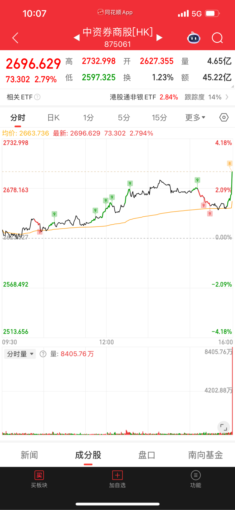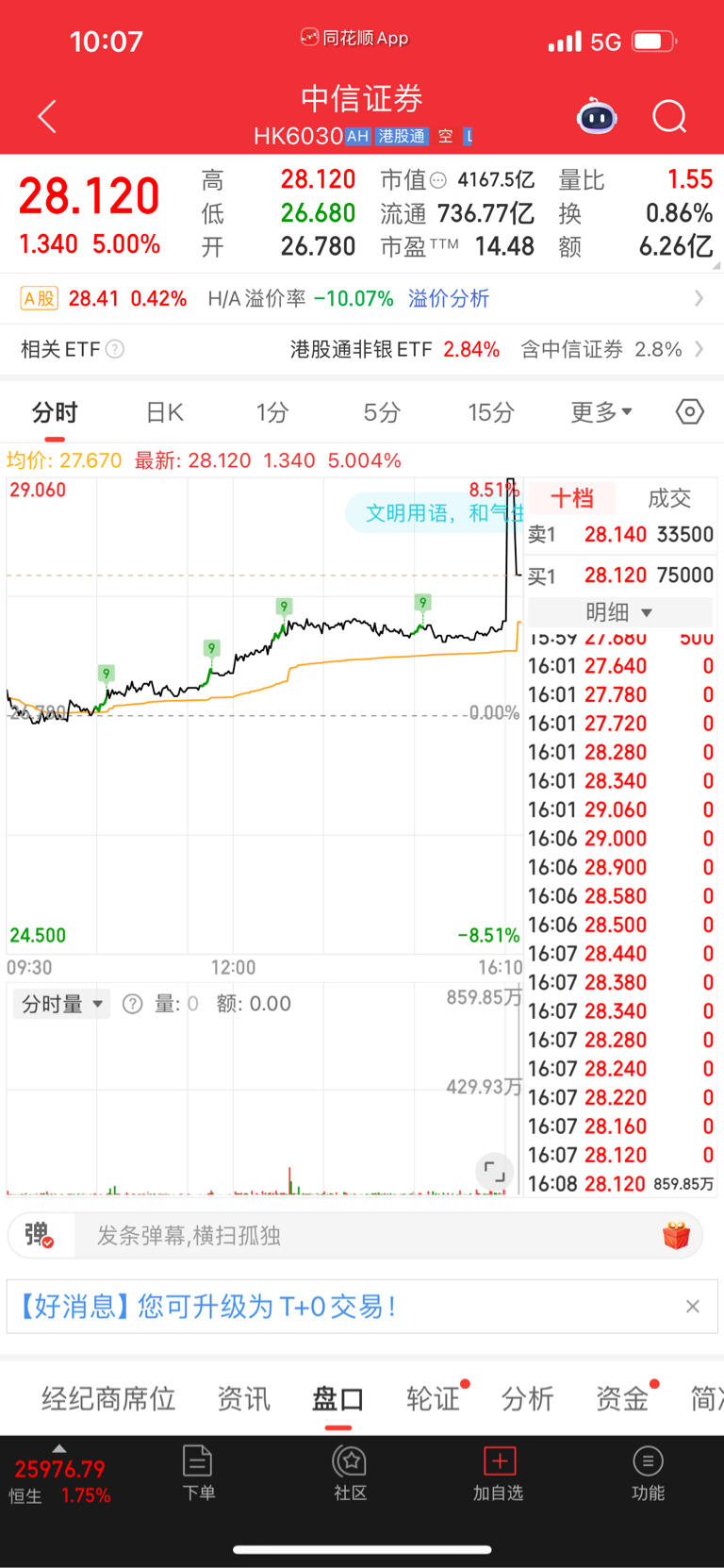 周五尾盘港股中信证券狂拉2个多点,外资证券整个板块拉升2个多点,历史上仅有的一次