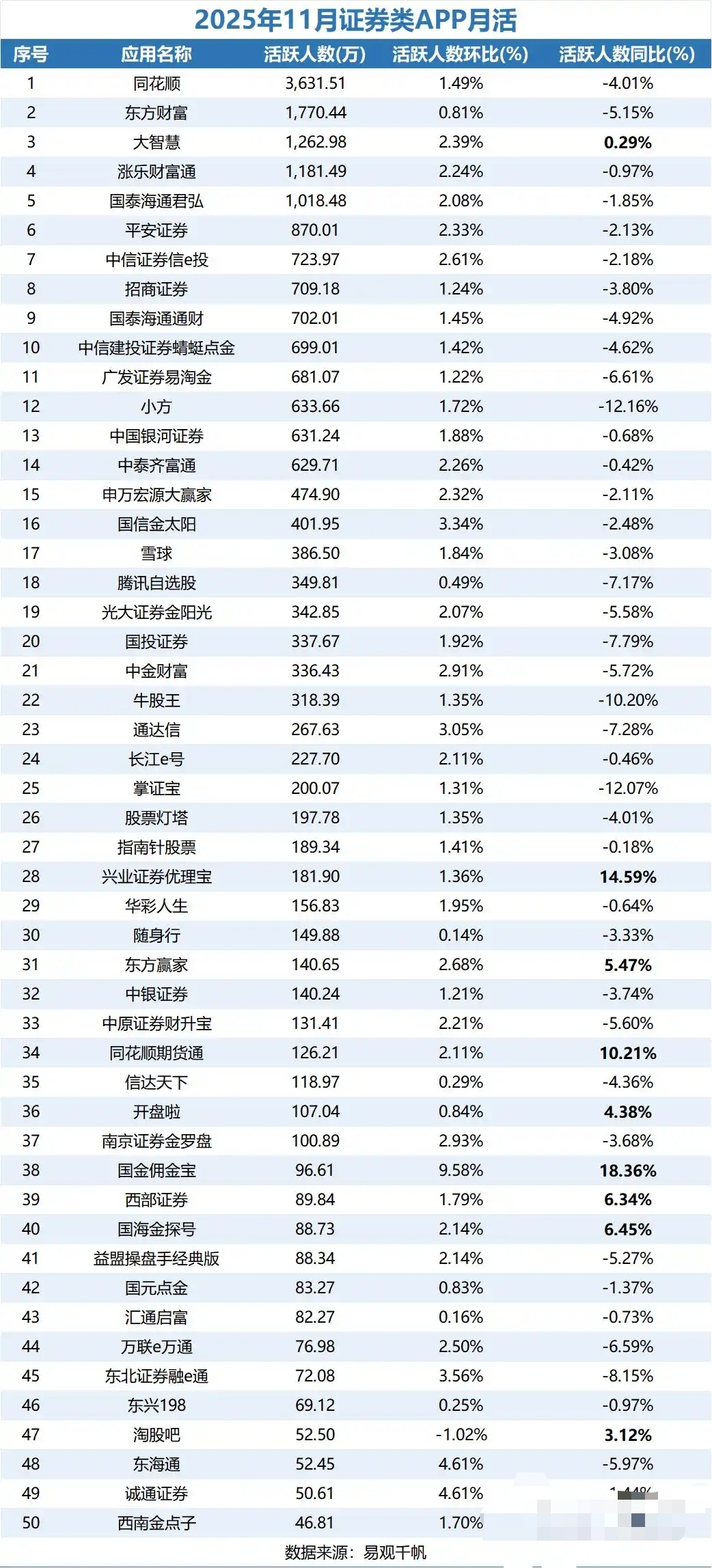 活跃的有17.2亿,东财跟同花顺才5000万,其他的人去哪了?