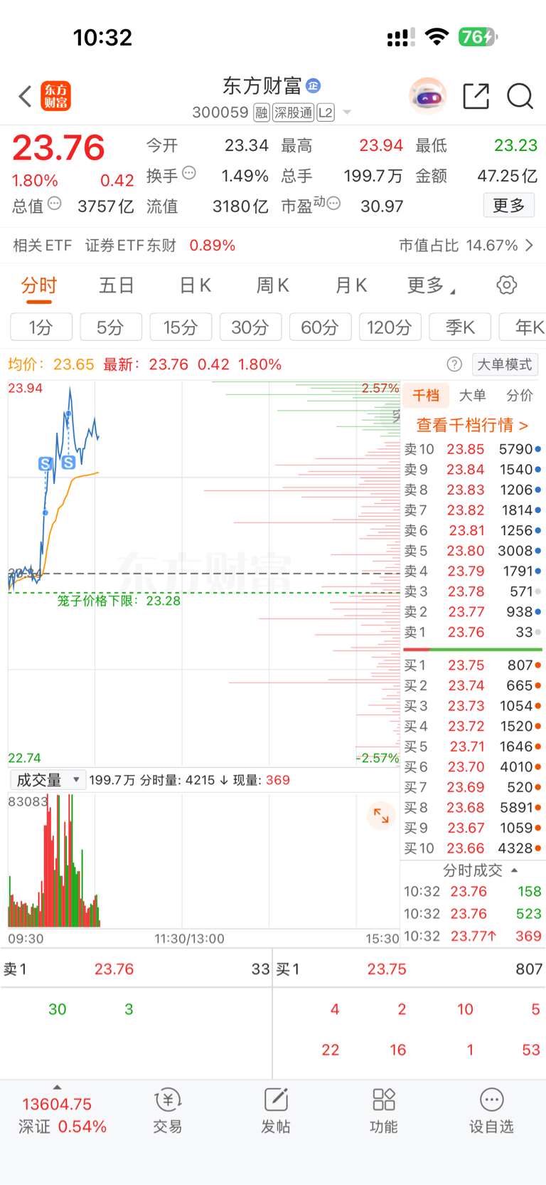 $东方财富(SZ300059)$ 快跑 下午跳水