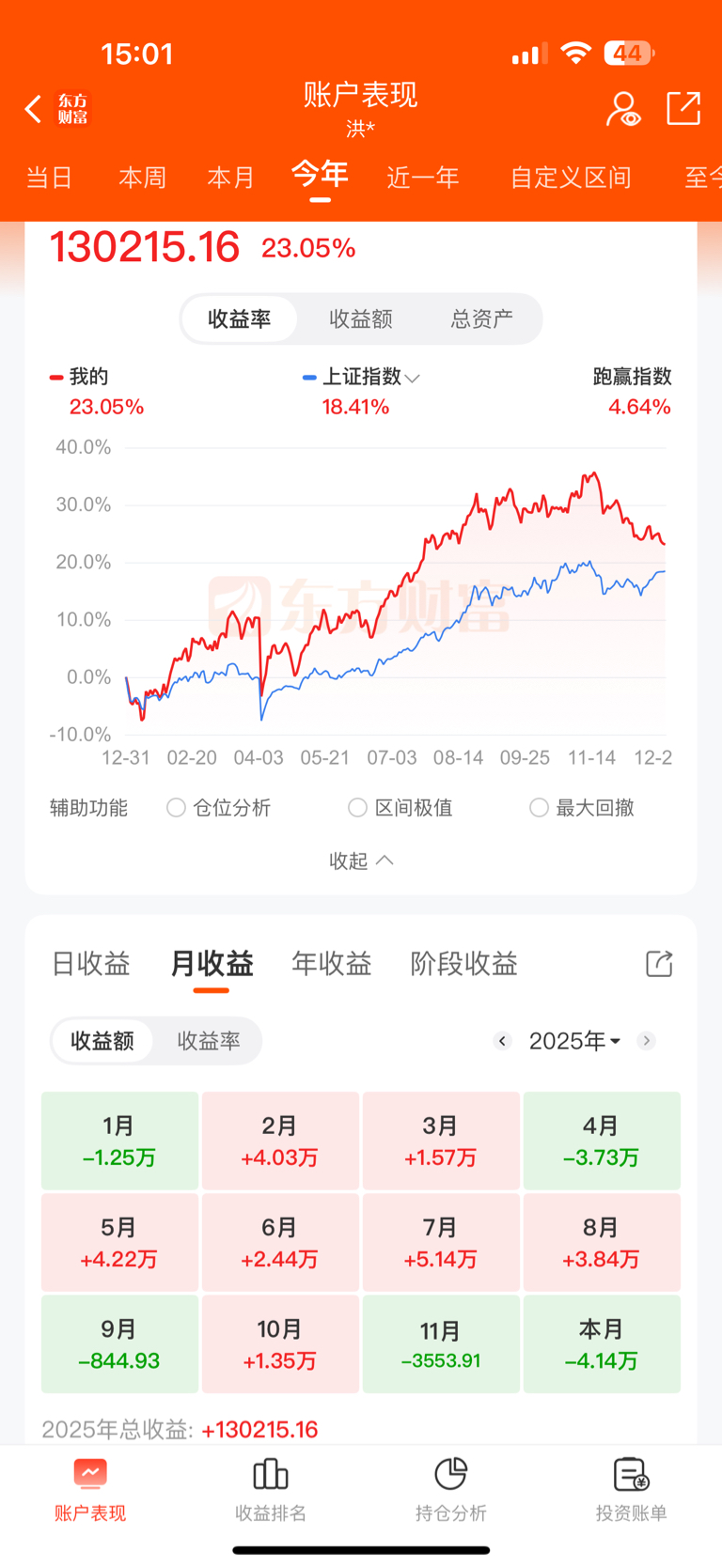 $东方财富(SZ300059)$ 第一年挣了点儿像样的钱,所以新股都没中,明年4月和12月要轻仓了,减少回撤挣更多的钱,手上一把消费,2026能不能来个消费年,争取把亏得都赚回来