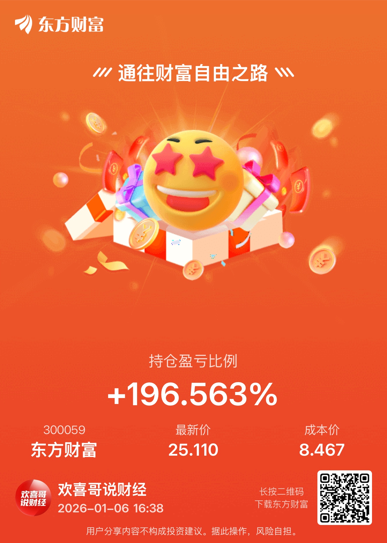 温馨提示: 1.根据《证券法》规定,禁止编造、传播虚假信息或者误导性信息,扰乱证券市场;2.用户在本社区发表的所有资料、言论等仅代表个人观点,与本网站立场无关,不对您构成任何投资建议。用户应基于自己的独立判断,自行决定证券投资并承担相应风险。《东方财富社区管理规定》