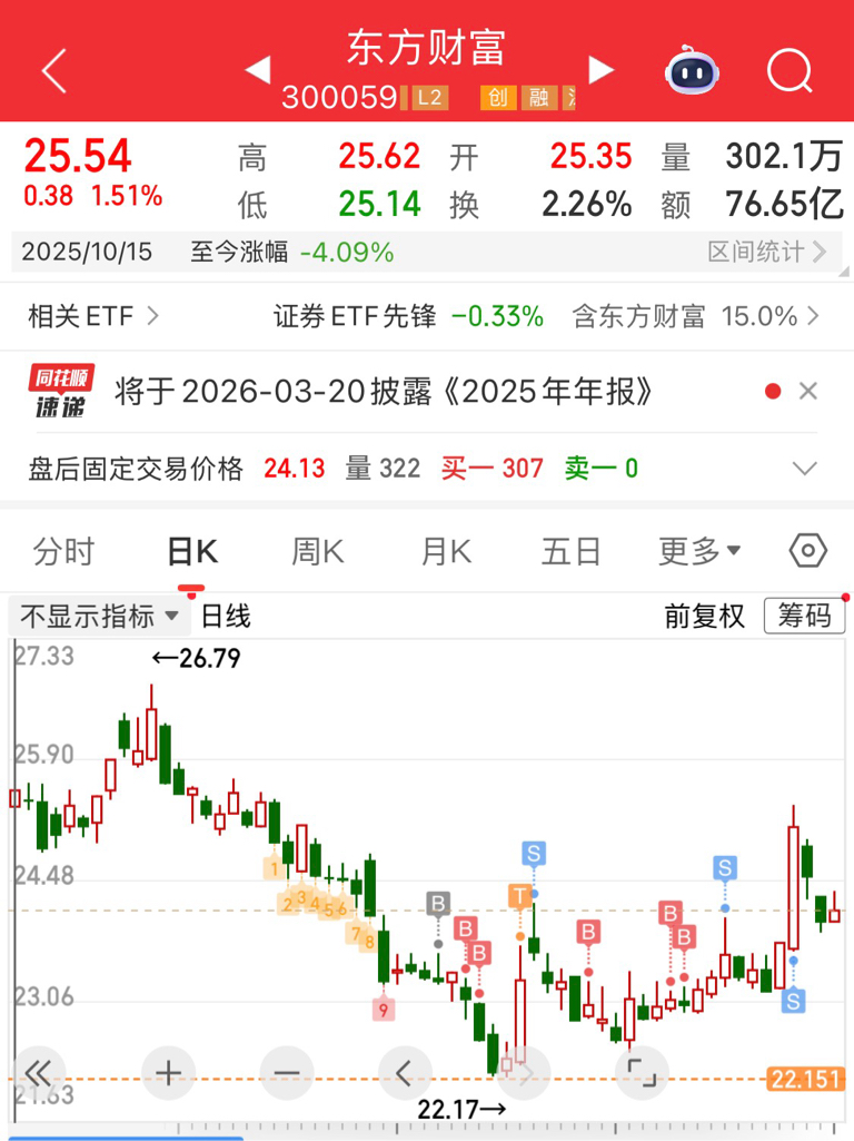 $东方财富(SZ300059)$ 其实今天可以接回来一些,但是为了控制舒适的成本线,波段出来的这部分仓位今天去做了一些景气度比较高的赛道,但绝对不是柚子那三大块(航天,脑机,核聚变)。因为这种没业绩的底部没有参与高处就不去参与博弈了。单从换手量上看就知道分歧有多大了,高难度的适合高手参与,咱是低手。