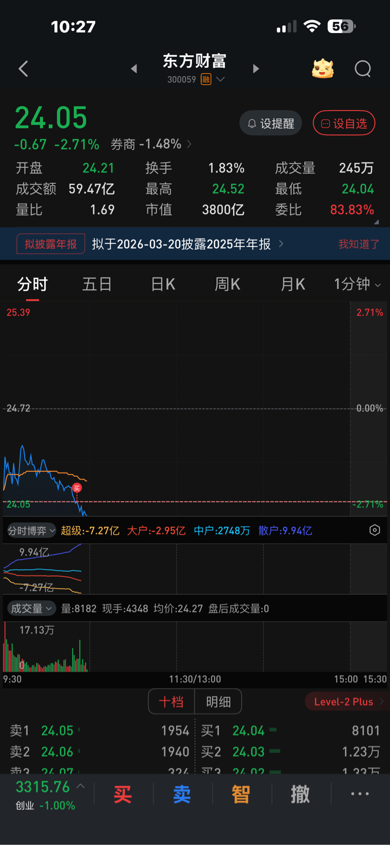 $东方财富(SZ300059)$ 还跌