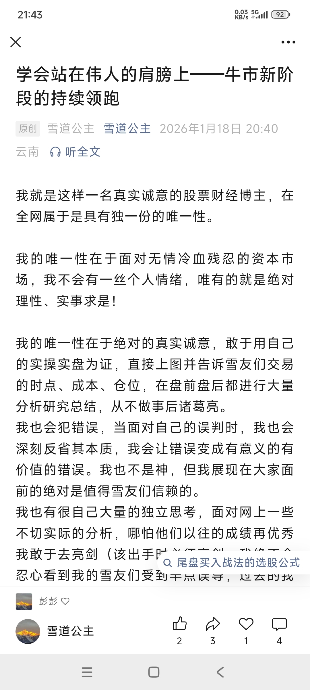 郑重声明:用户在财富号/股吧/博客等社区发表的所有信息(包括但不限于文字、视频、音频、数据及图表)仅代表个人观点,与本网站立场无关,不对您构成任何投资建议,据此操作风险自担。请勿相信代客理财、免费荐股和炒股培训等宣传内容,远离非法证券活动。请勿添加发言用户的手机号码、公众号、微博、微信及QQ等信息,谨防上当受骗!