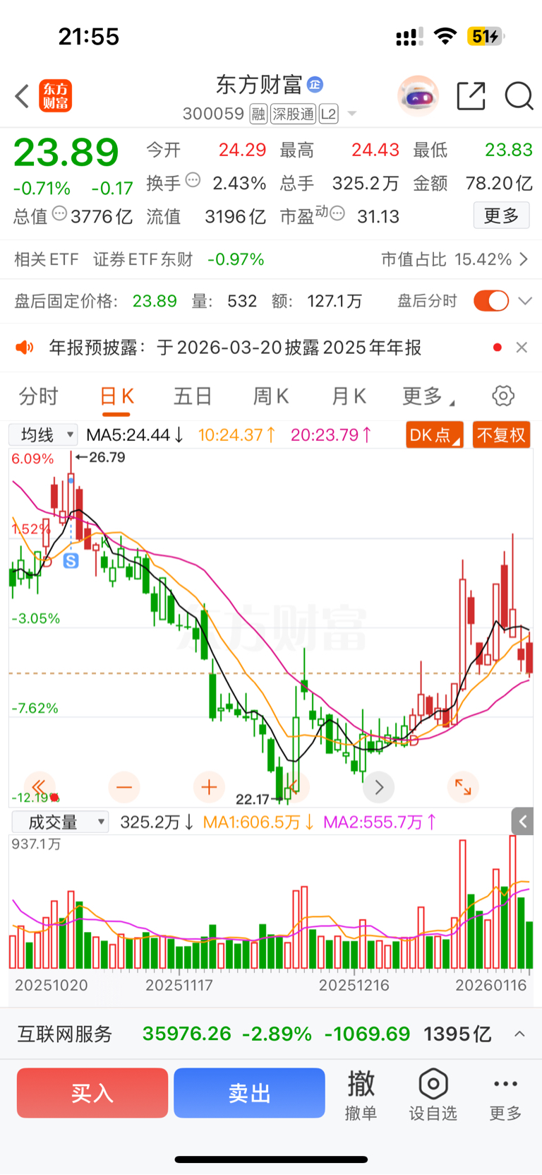 $东方财富(SZ300059)$ 东方卖的那一天给了点利润。