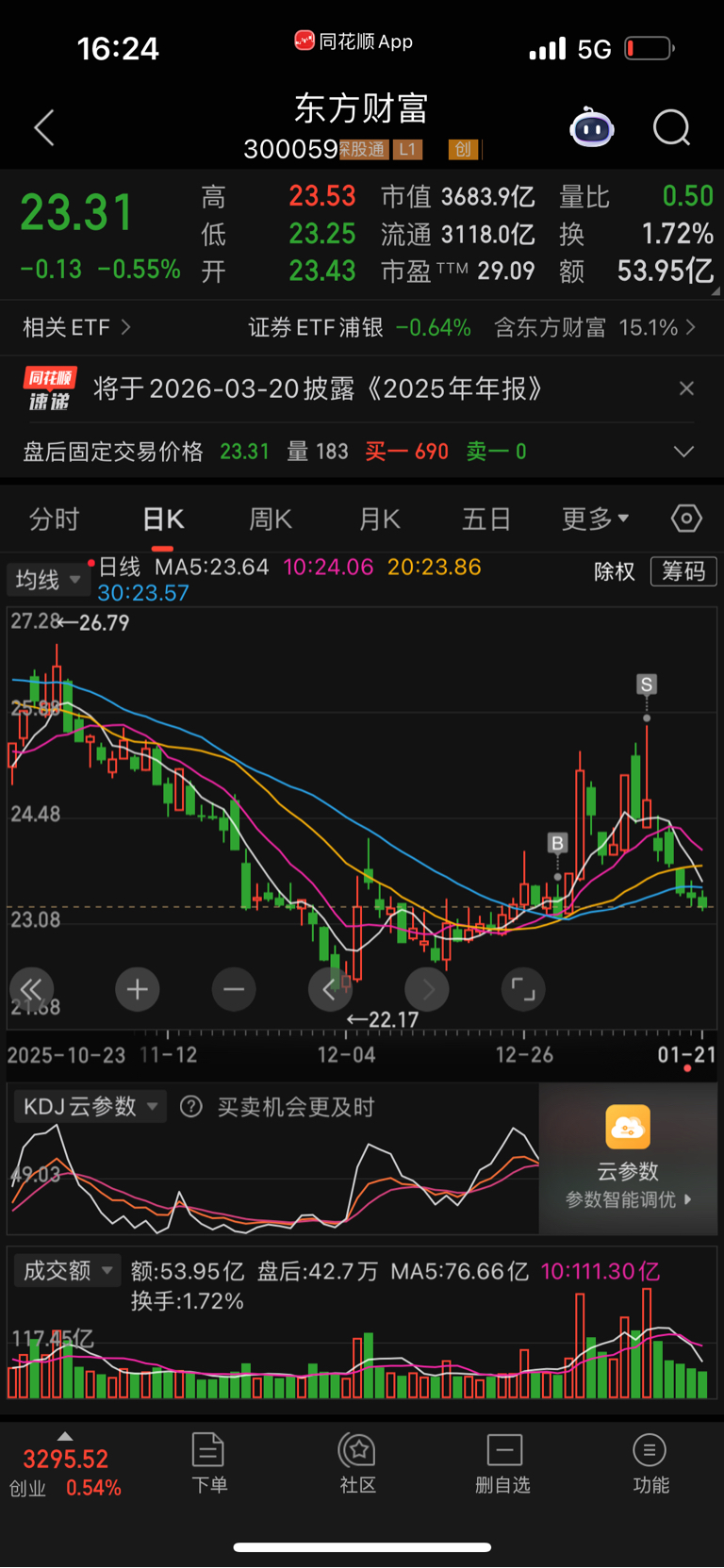 $东方财富(SZ300059)$ 明天再开一个中阴线,我就重新回来了。这波吃了10个点没走,后面5个点走的。不然到今天又亏钱了